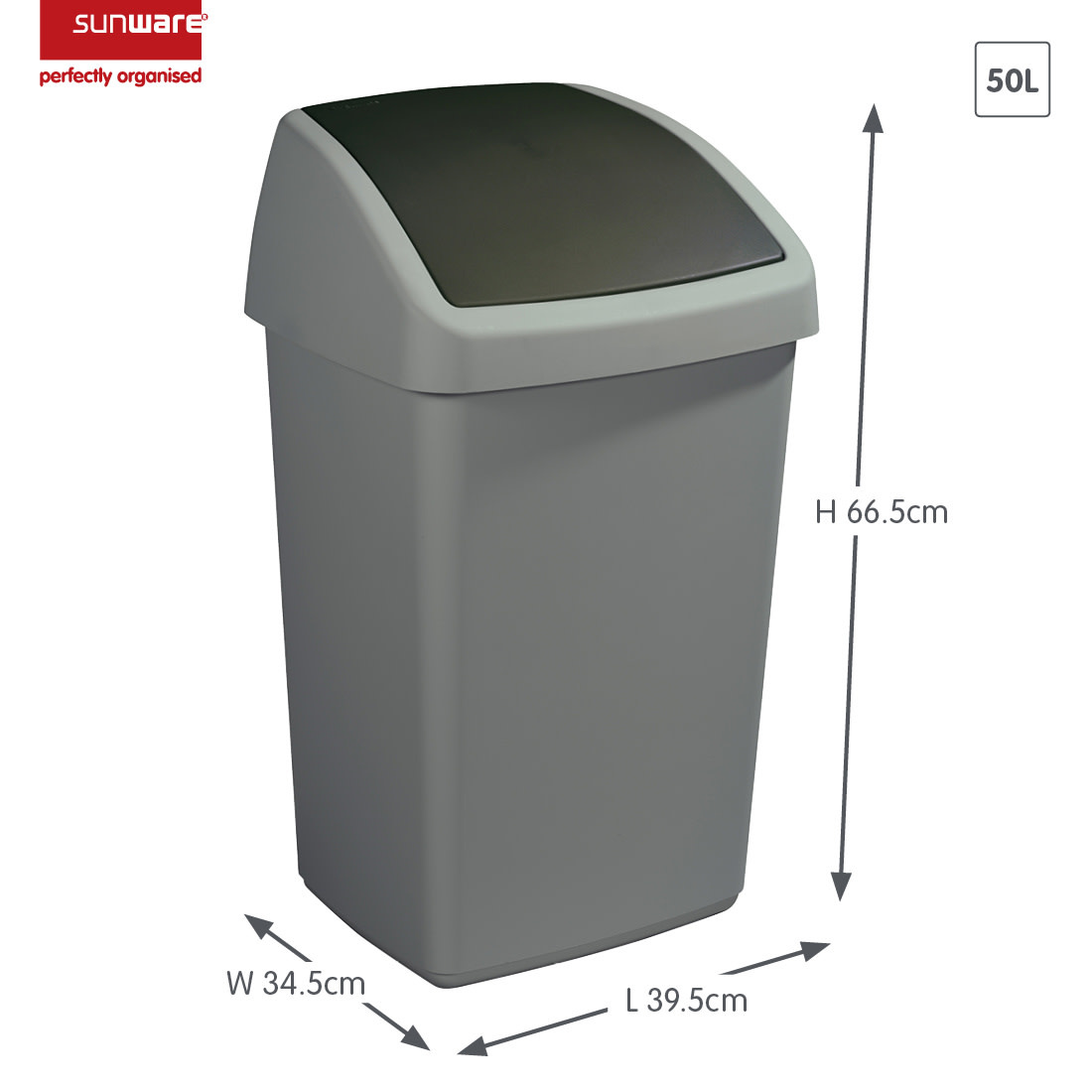 Sunware Afvalbak inhoud 50 liter Delta swing deksel zilver/zwart Lees meer