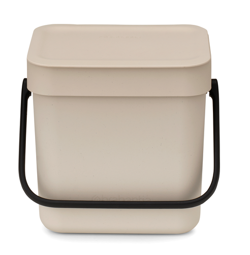 Dit leuke Brabantia Sort & Go afvalemmertje van 3 liter met openblijvend deksel is super voor schillen, korstjes, kliekjes ... eigenlijk voor al je organische keukenafval. Zet hem gezellig op je aanrecht of verstop hem in een la. Vol? Grijp het handige hengsel en leeg hem op je composthoop of in je GFT-bak. Een grote hulp in XXS formaat! Dit afvalbakje heeft een breedte van 188mm, een diepte van 139mm en een hoogte van 181mm