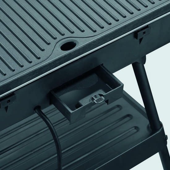 Dankzij de regelbare thermostaat heb je altijd de controle over de temperatuur. Het schoonmaken is eenvoudig dankzij de uitneembare grillplaat en vetopvangbak, die vaatwasserbestendig is. Extra gemak biedt het afneembare windscherm en de extra bak onder het apparaat.