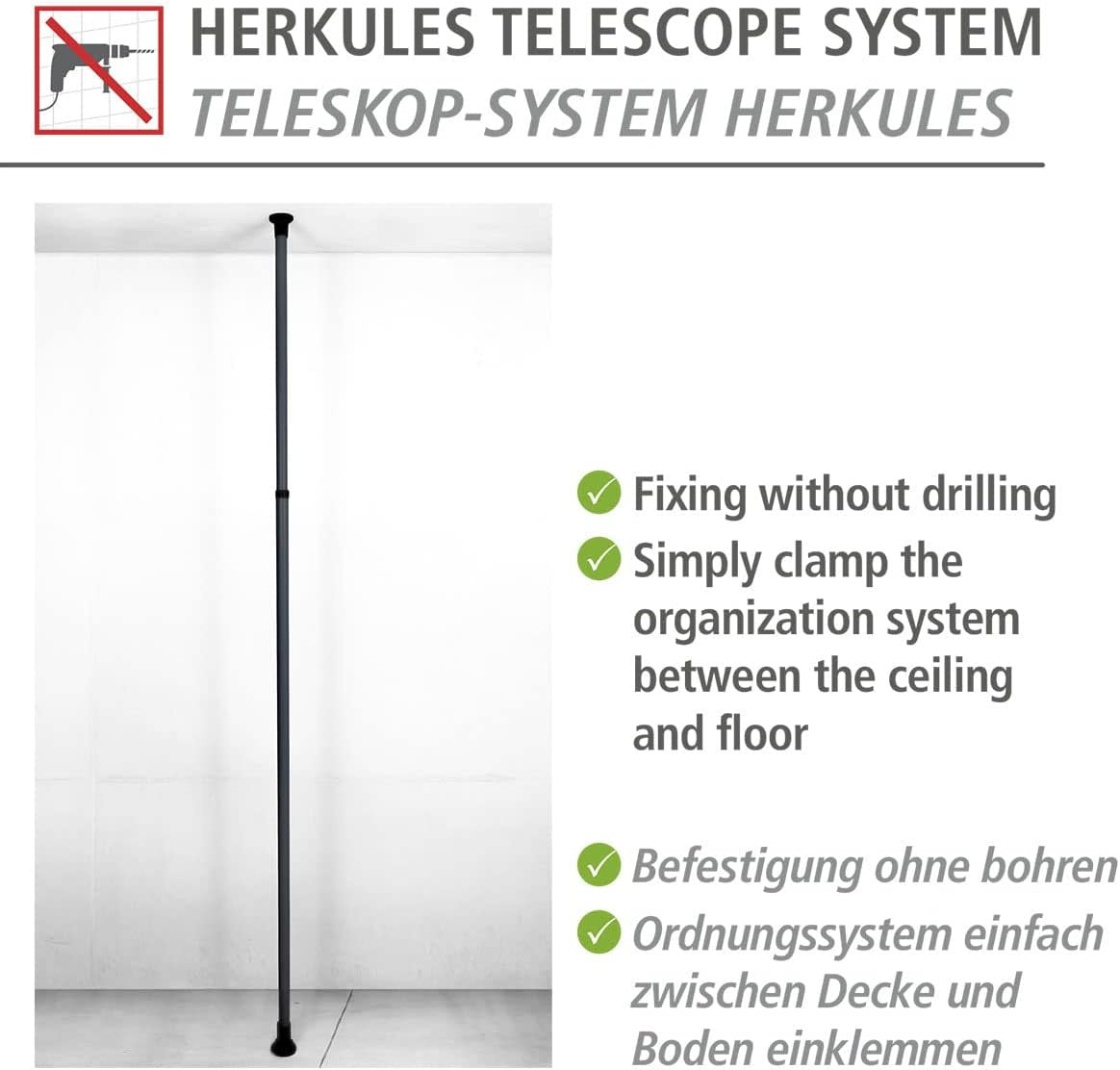 Met de uitschuifbare hoofdpaal van het Hercules Mix & Match garderobesysteem van WENKO haal je een praktisch en flexibel element in huis voor het creëren van je ideale walk-in closet. Deze stevige verticale stang is in hoogte verstelbaar van 165 tot 300 cm, waardoor hij in vrijwel elke ruimte past. Dankzij de antislip-voeten aan beide uiteinden en de hoogwaardige gepoedercoate metalen constructie biedt de stang optimale stabiliteit, zelfs bij zwaar gebruik. Ideaal om je garderobe uit te breiden of opnieuw in te richten.