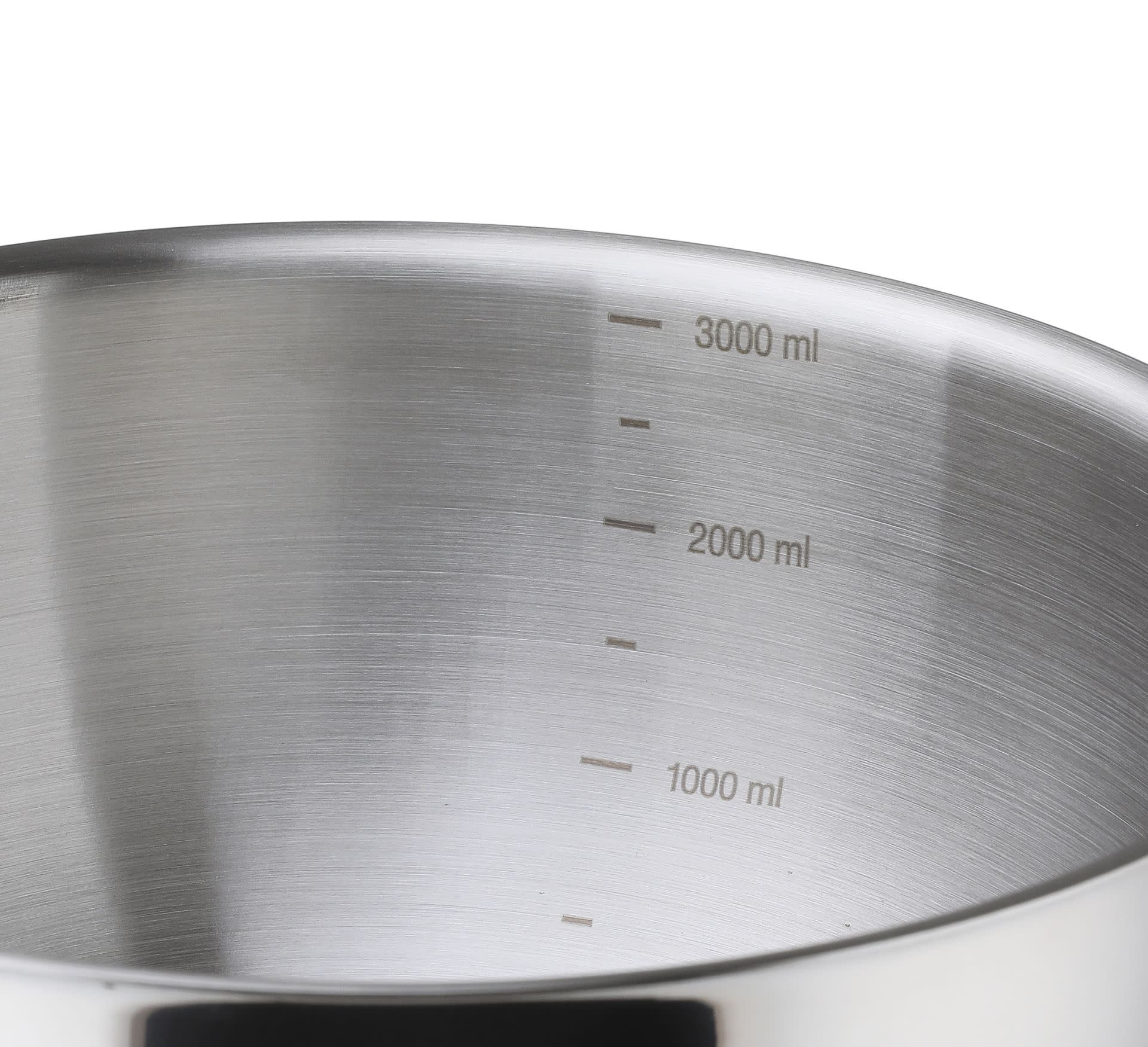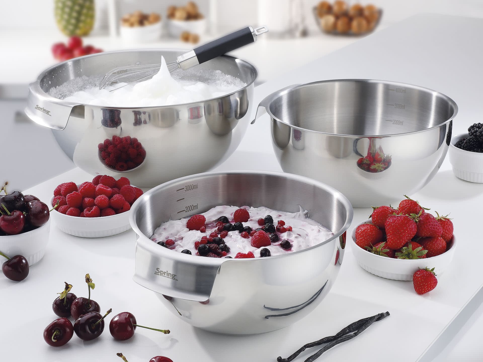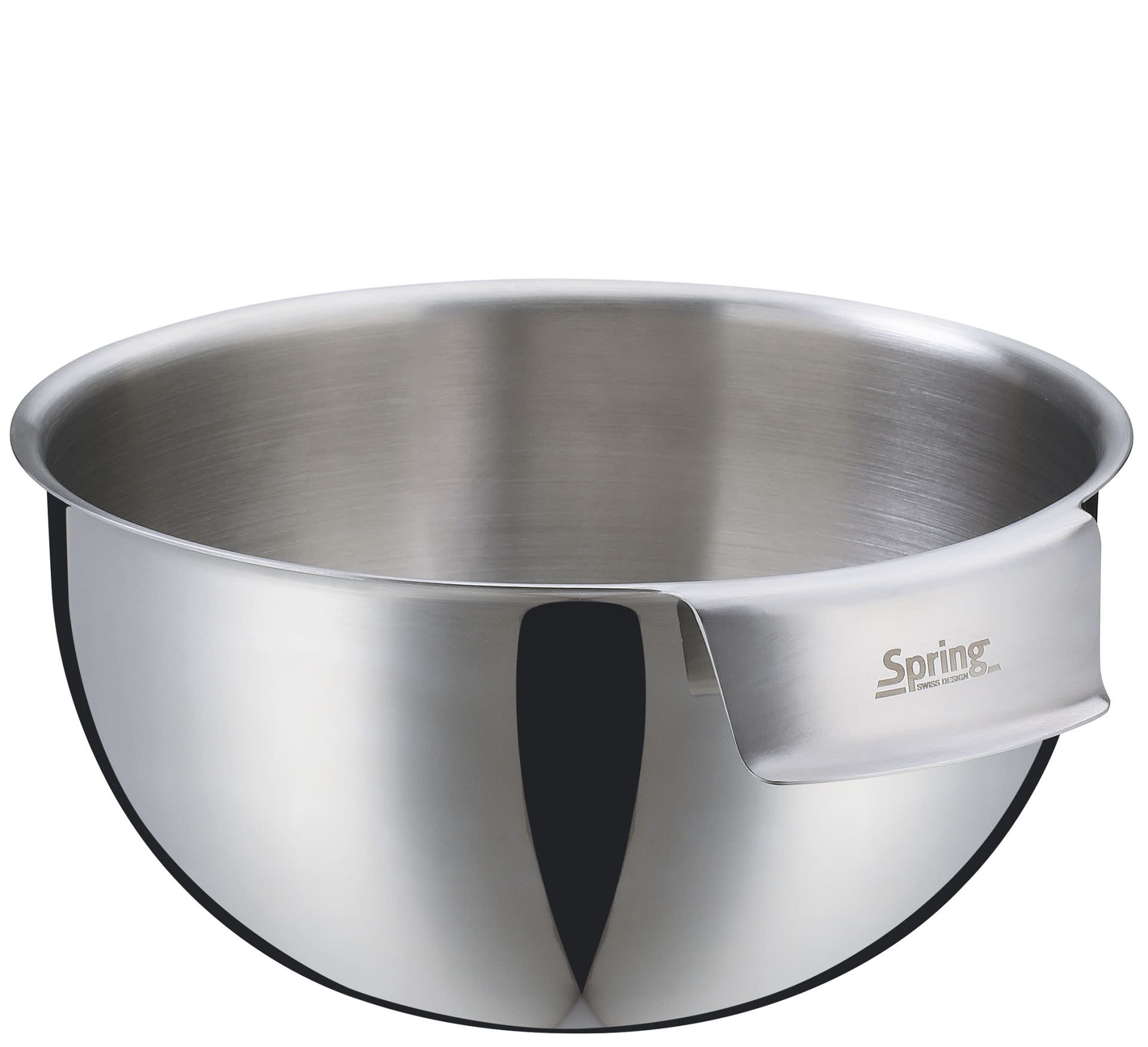 De beslagkom met handvat 22 cm van Spring is gemaakt van hoogwaardig roestvrij staal en heeft een inhoud van 3,3 liter. Dankzij de handige zijhandgreep, interne maatschaal en afgeplatte bodem biedt de kom optimale stabiliteit en gebruiksgemak bij mixen, roeren en kneden. Het hitte- en koudebestendige materiaal is duurzaam, hygiënisch en eenvoudig te reinigen in de vaatwasser.
