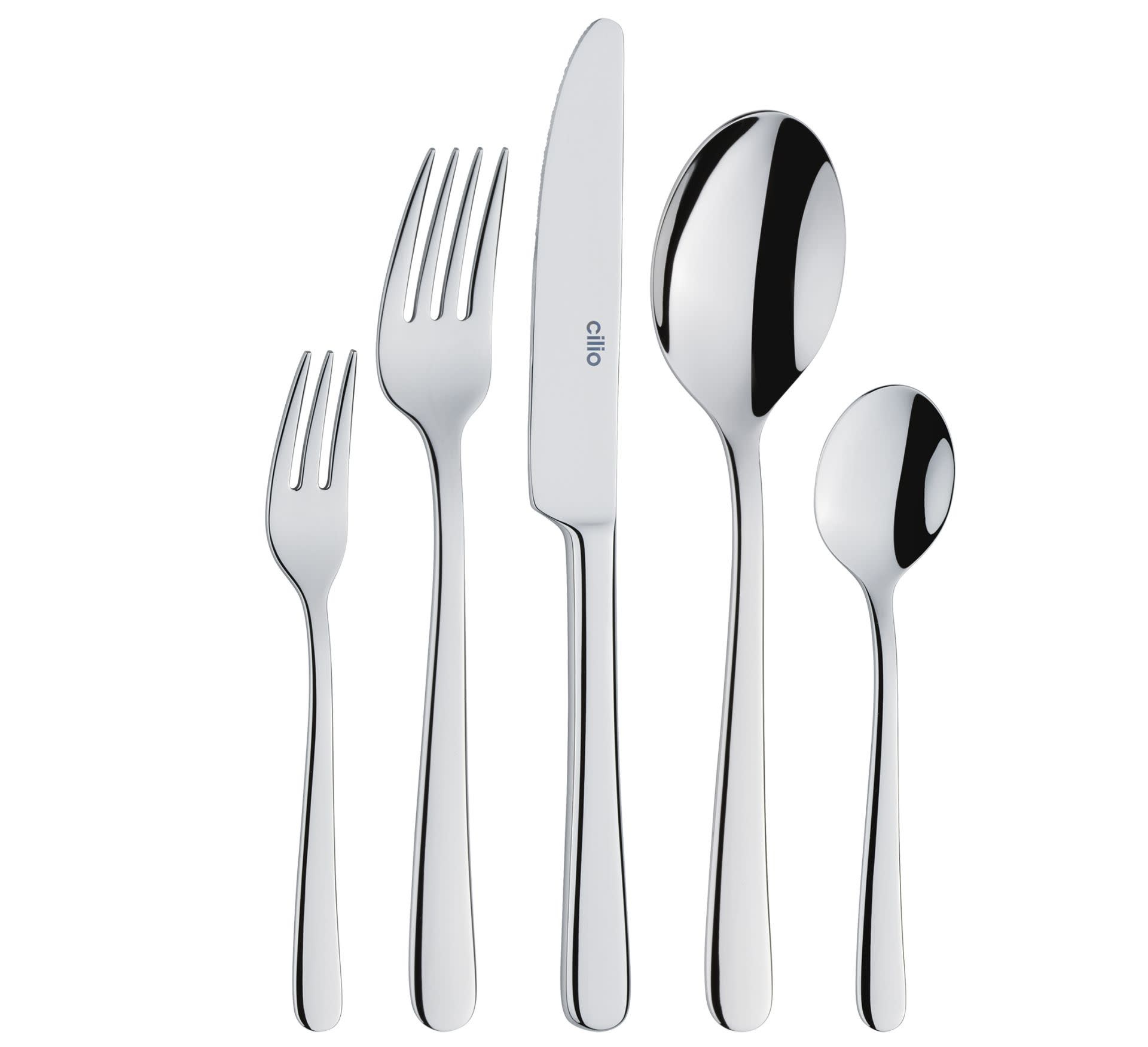 Geef uw tafel een stijlvolle upgrade met de Roma bestekset van Cilio. Deze 30-delige set is vervaardigd uit hoogwaardig, gepolijst roestvrij staal en straalt pure elegantie uit, perfect voor zowel alledaagse diners als feestelijke gelegenheden.