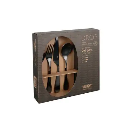 Cassette 6 persoons 24-delig Satin zwart Drop