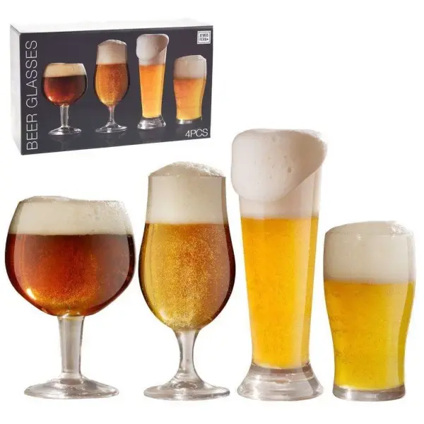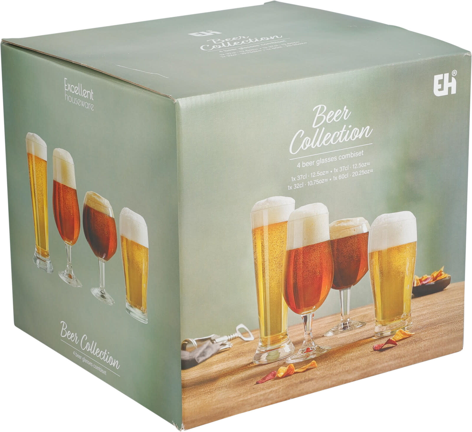 Deze set van vier bierglazen van Excellent Houseware is perfect om cadeau te geven of zelf van te genieten. De set bestaat uit glazen met verschillende inhoudsmaten: 1 glas van 370 ml, 1 van 400 ml, 1 van 450 ml en 1 van 600 ml, zodat u altijd het juiste bierglas bij de hand heeft voor elke gelegenheid.