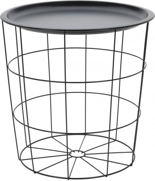 Deze bijzettafel heeft een diameter van 40cm en een hoogte van 40cm. De bovenkant van de bijzettafel kan afgenomen worden waardoor er dingen in de tafel opgeborgen kunnen worden zoals dekens of kussens, maar de bovenkant zelf kan ook als metalen dienblad dienen voor het gemakkelijk vervoeren van producten die up op de tafel wilt hebben.