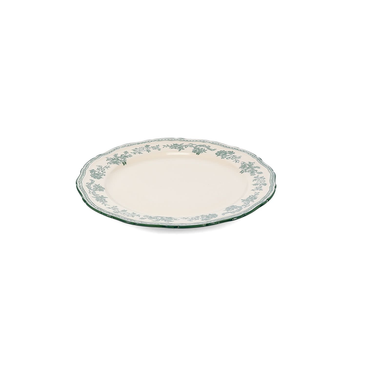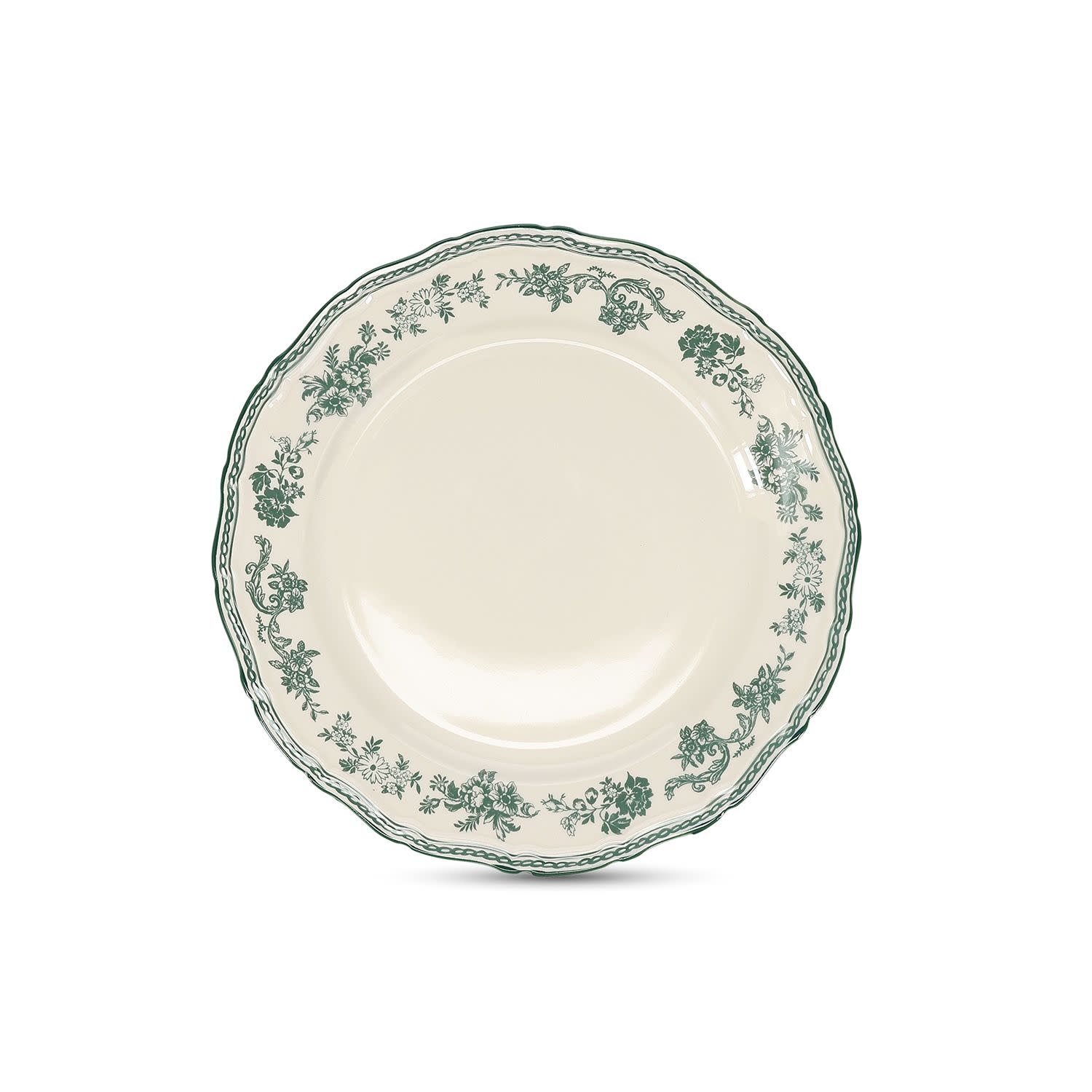 Het bord uit de Cyril collectie heeft een diameter van 27 cm en is uitgevoerd in groen met ivoorkleurige accenten. Het ronde ontwerp is vervaardigd uit porselein en afgewerkt met een niet reactieve glazuurlaag met subtiel patroon.