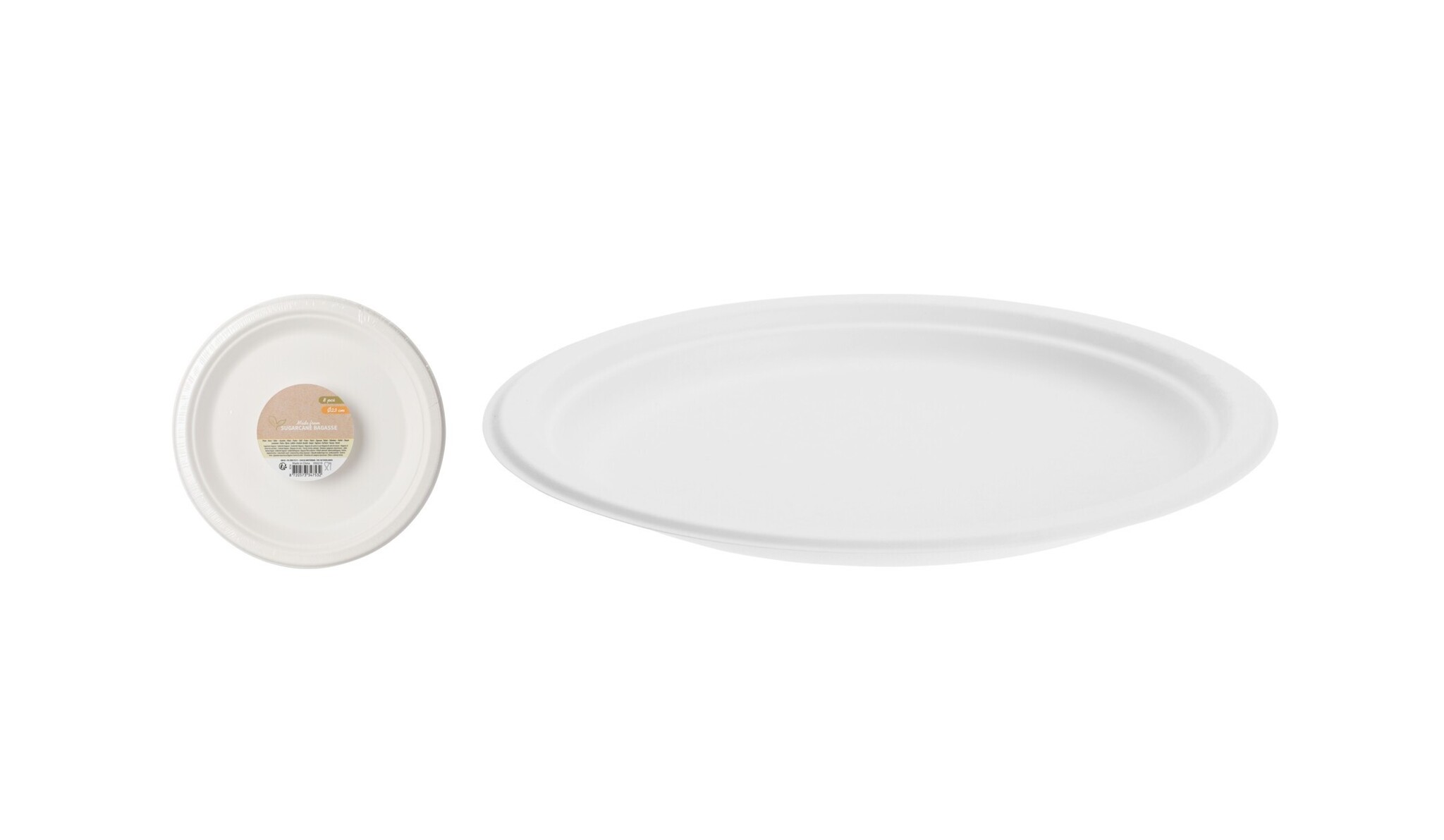 Bagasse is een natuurlijk materiaal gemaakt van resterende suikerrietvezels. Hierdoor zijn de borden biologisch afbreek en dus milieuvriendelijk. Omdat de borden biologisch afbreekbaar zijn moeten ze weggegooid worden in de compostbak.