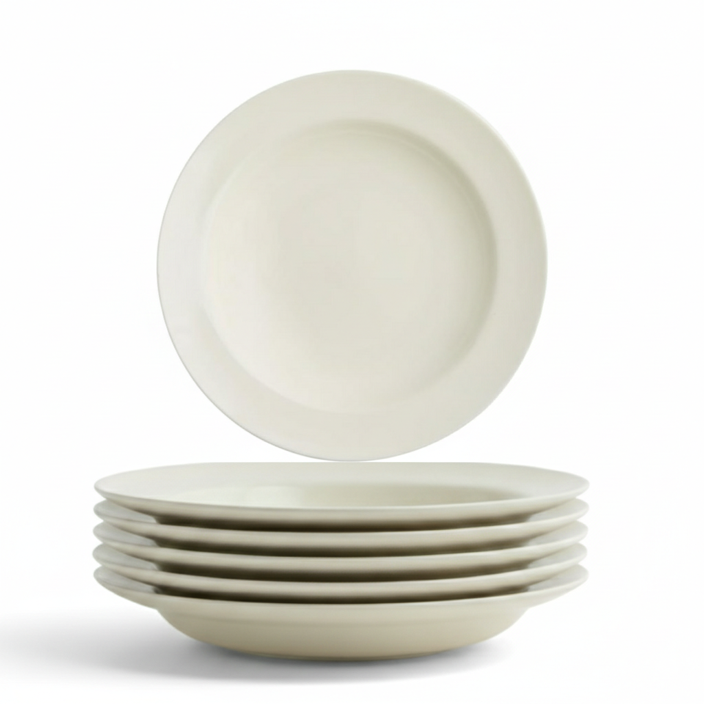 Deze set van 6 Kitchen Diepe Borden combineert een tijdloos design met een zachte crèmekleur die al decennialang past op elke tafel en in elk interieur. De ingetogen uitstraling zorgt voor een stijlvolle en rustige basis, geschikt voor zowel dagelijkse maaltijden als bijzondere gelegenheden.