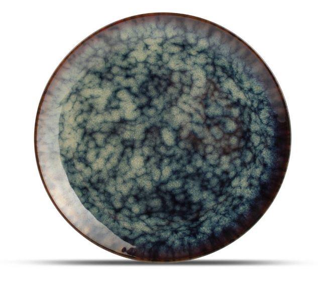 Dit bord heeft een diameter van 20 cm. het is onderdeel van de serie Hazy blue van het merk BonBistro.