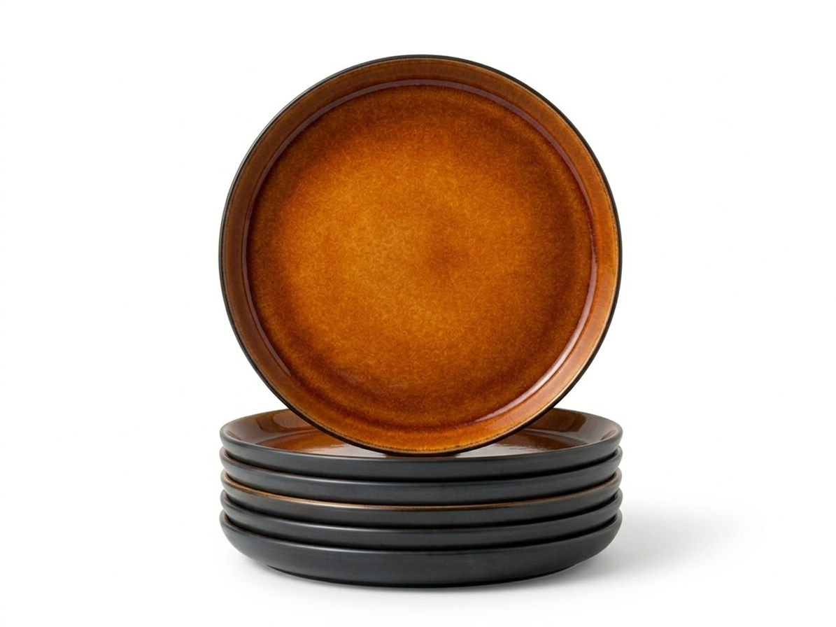 Dankzij het ruime oppervlak zijn de borden ideaal voor het creatief presenteren van ontbijt, lunch of kleinere gerechten. De unieke reactive glaze afwerking geeft elk bord een eigen karakter, waardoor geen twee borden exact hetzelfde zijn. De combinatie van mat zwart en glanzend amber zorgt voor een opvallende en stijlvolle uitstraling op tafel.