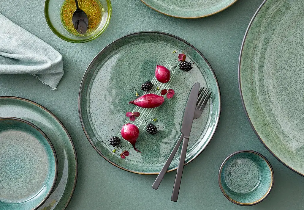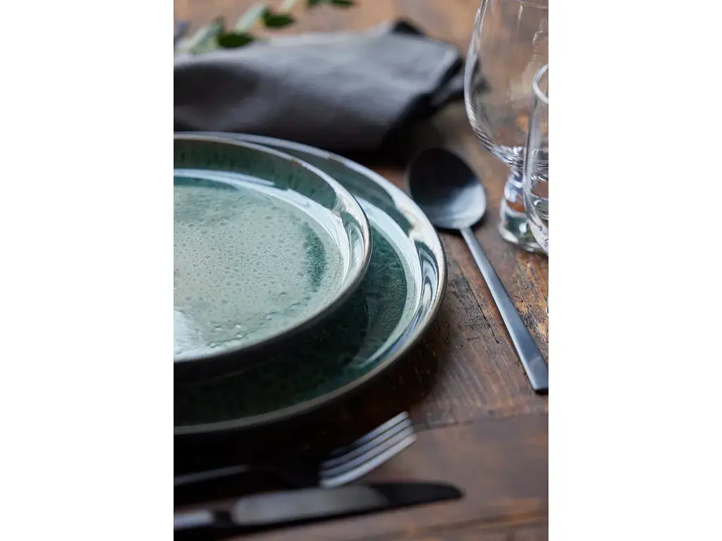 Dit stijlvolle bord uit de Gastro collectie van Bitz is vervaardigd van duurzaam stoneware met een matte zwarte buitenkant en een glanzende groene binnenkant. De glanzende binnenzijde speelt met het licht en geeft het bord een levendig kleurenspel dat de presentatie van je gerechten extra aantrekkelijk maakt.