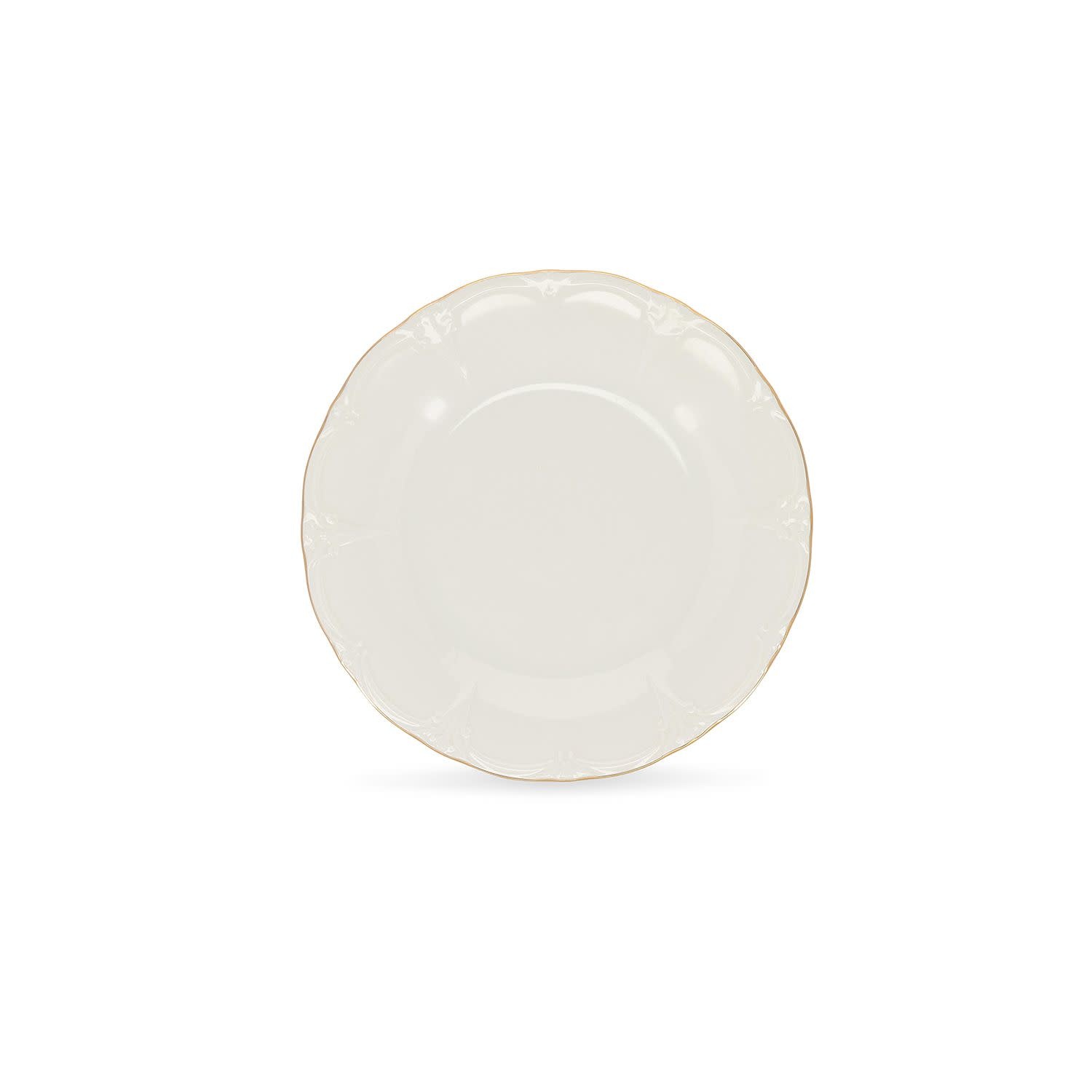 Serveer nostalgie met ons 21 cm witte bord met gouden rand uit de Retro-collectie. Perfect om je culinaire creaties stijlvol te presenteren, dit stevige porseleinen stuk is ideaal voor bistro's en cafés die een klassieke maar moderne touch zoeken.