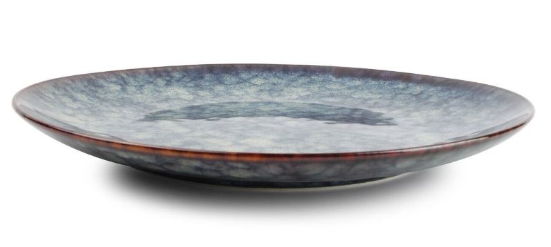 Dit bord heeft een diameter van 25 cm. het is onderdeel van de serie Hazy blue van het merk BonBistro.