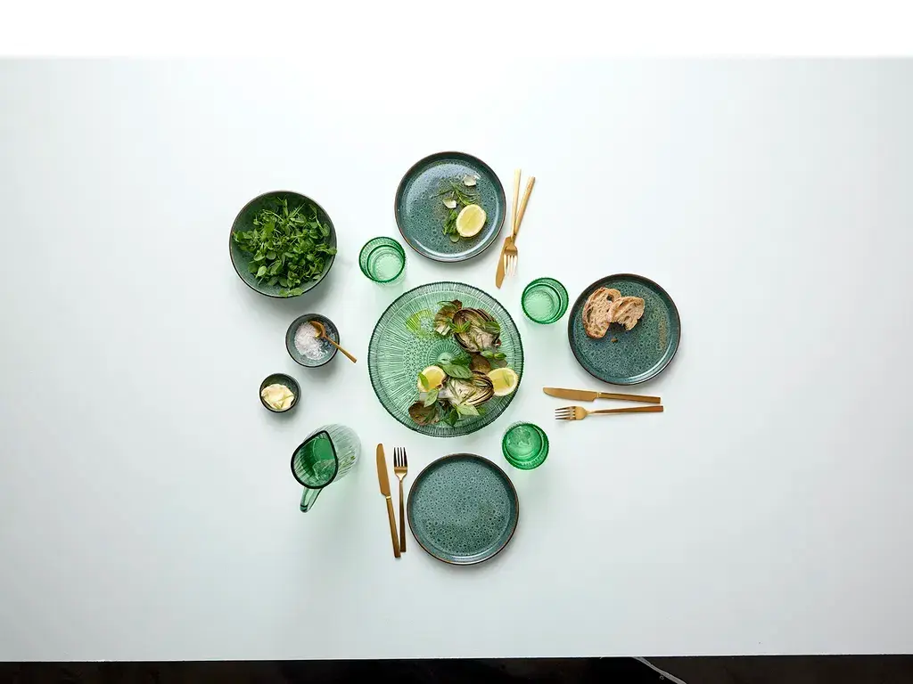 Dankzij het ruime oppervlak zijn de borden perfect voor het serveren van hoofdgerechten en het creatief opmaken van gerechten. De unieke reactive glaze afwerking zorgt ervoor dat ieder bord een eigen karakter heeft, waardoor geen twee borden exact hetzelfde zijn. De combinatie van mat zwart en glanzend groen zorgt voor een opvallend en eigentijds contrast op tafel.