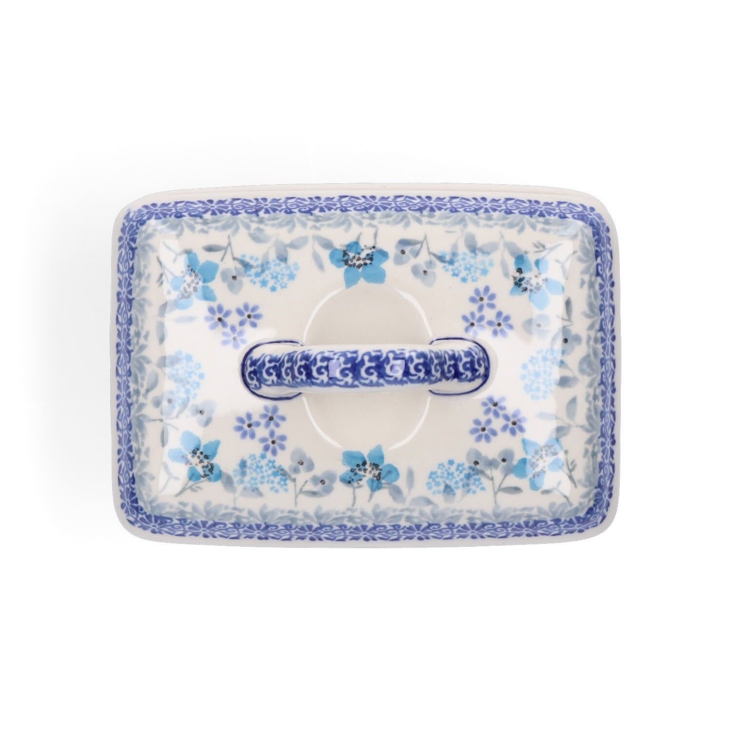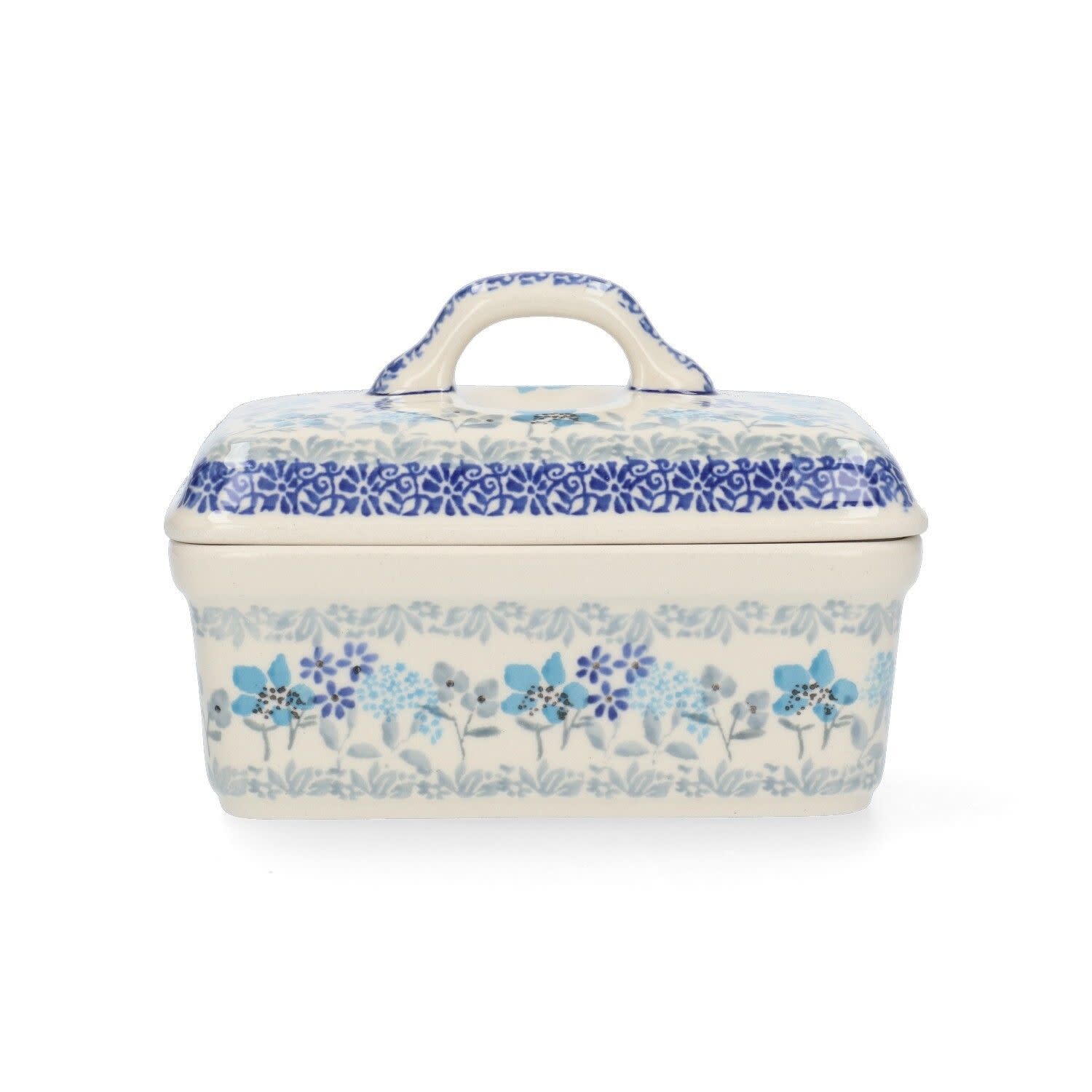 Deze rechthoekige botervloot van Bunzlau Castle uit de Delicate Breeze collectie heeft een frisse en vrolijke uitstraling. Het decor bestaat uit verschillende bloemen en fijne sjabloonpatronen, wat zorgt voor een speels en sierlijk geheel op tafel.