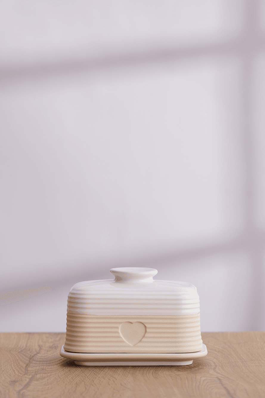 Bewaar en serveer boter op een stijlvolle manier met de Rustic Charm boterschaal met deksel. Deze elegante boterschaal is vervaardigd uit hoogwaardig steengoed en combineert duurzaamheid met een warme, rustieke uitstraling. Het beige design voegt een charmante, landelijke touch toe aan elke tafel, of je nu een ontbijt, brunch of diner presenteert.