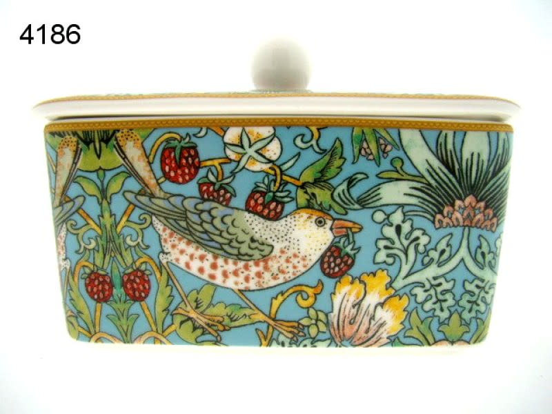 De Botervloot Strawberry Thief is geschikt voor het bewaren van boter. De botervloot is gemaakt van porselein en is geschikt om zowel in de vaatwasser als in de magnetron te doen.