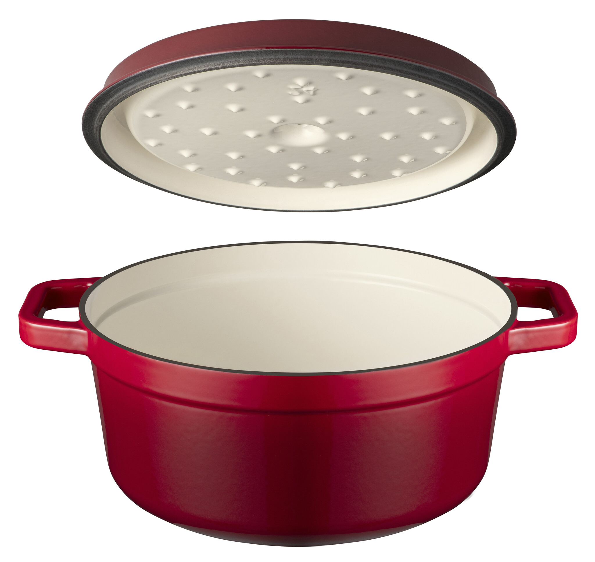 De rode kleur geeft je keuken een frisse, moderne uitstraling, terwijl de pan dankzij de eenvoudige reiniging en emaille coating jarenlang meegaat.