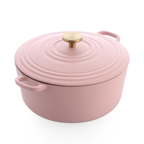 De pan is volledig vervaardigd uit robuust gietijzer, inclusief deksel en grepen, wat zorgt voor een optimale warmteverdeling en -behoud. Hierdoor kunt u op lage temperatuur garen met behoud van smaak en malsheid. Dankzij het stevige materiaal is de pan geschikt voor alle warmtebronnen, waaronder inductie, en bovendien ovenbestendig tot 230°C. Voor behoud van de pan, is het beter om de pan met de hand af te wassen.