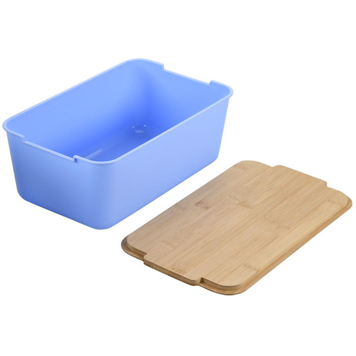 Deze praktische broodtrommel is gemaakt van FSC®-gecertificeerd bamboe en plastic, en biedt een voedselveilige oplossing voor het bewaren van brood. De trommel heeft een bovenmaat van 33x19,5x12,5 cm en een ondermaat van 28x16,5x12,5 cm, met een gewicht van 1 kg. .