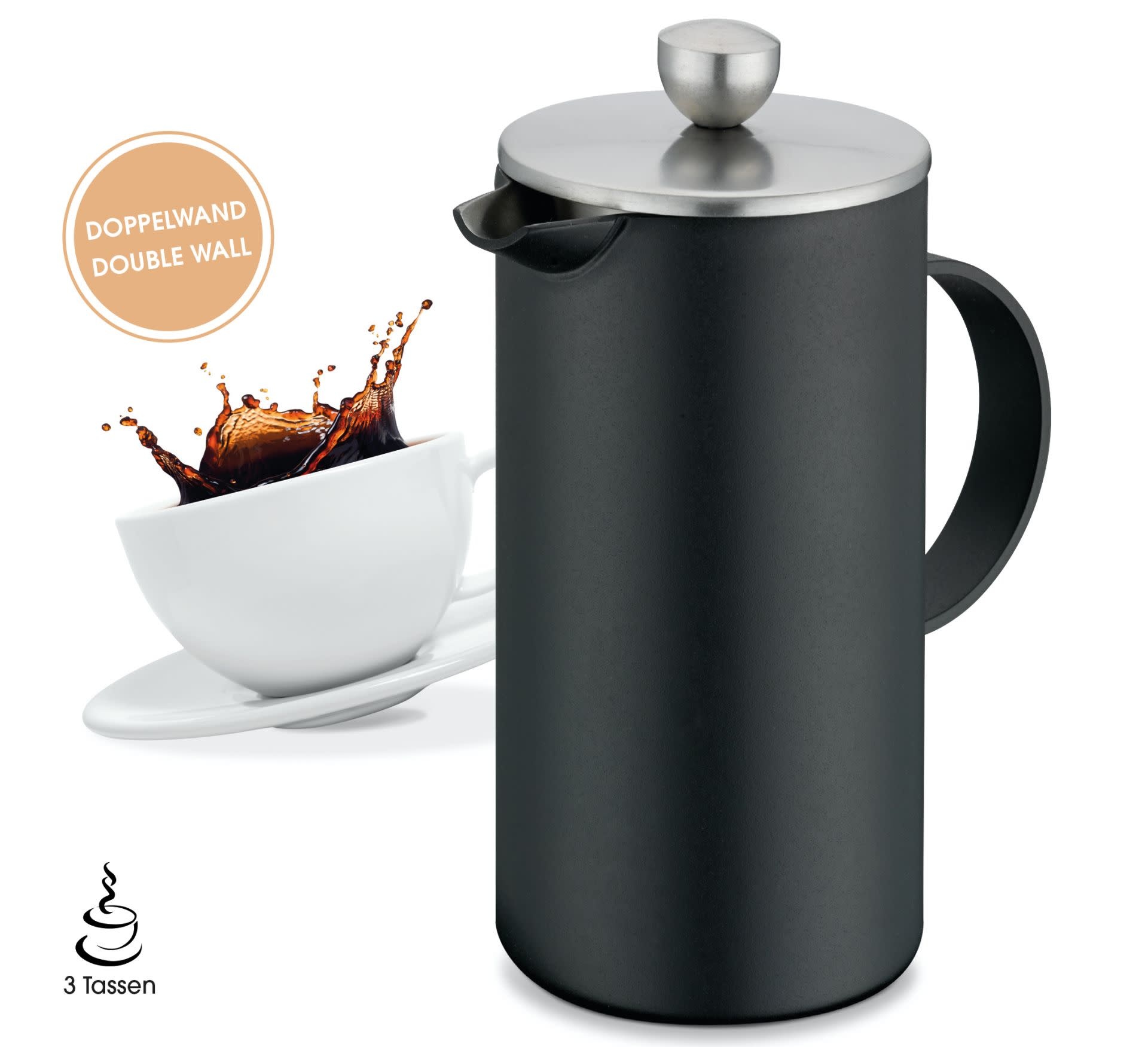 Ervaar de pure smaak van koffie, thee of cold brew met deze stijlvolle cafetière uit de AIDA-collectie van Cilio. Dit compacte model, geschikt voor circa drie kopjes, is vervaardigd uit dubbelwandig roestvrij staal. Daardoor blijft uw drankje langer op de gewenste temperatuur, warm of koud.