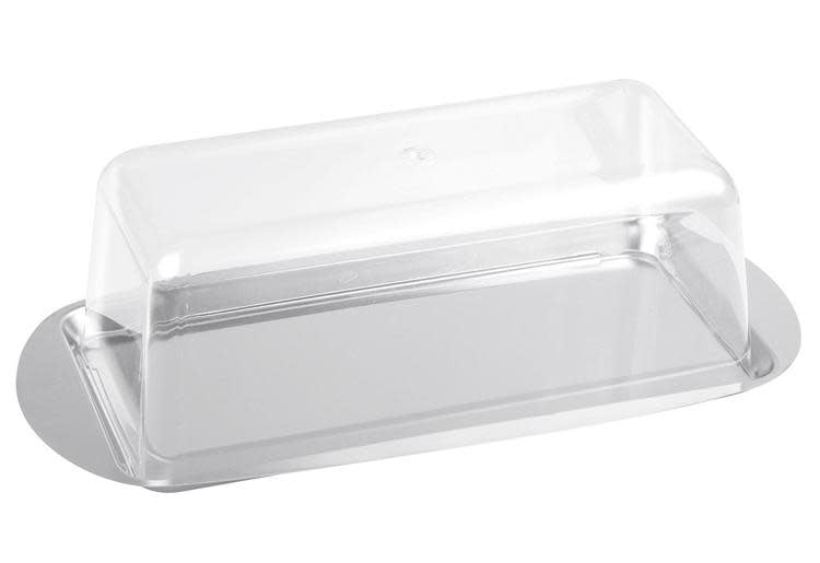 De cakestolp Torta van CHG is een tweedelige serveerset, bestaande uit een roestvrijstalen schaal en een transparante kunststof stolp. Dankzij het tijdloze ontwerp is deze schaal geschikt voor het stijlvol presenteren en bewaren van cake, taarten, gebak of andere lekkernijen. De combinatie van duurzaam RVS en stevig kunststof zorgt voor een hygiënische en onderhoudsvriendelijke oplossing. Beide onderdelen zijn vaatwasmachinebestendig, wat het schoonmaken eenvoudig maakt.