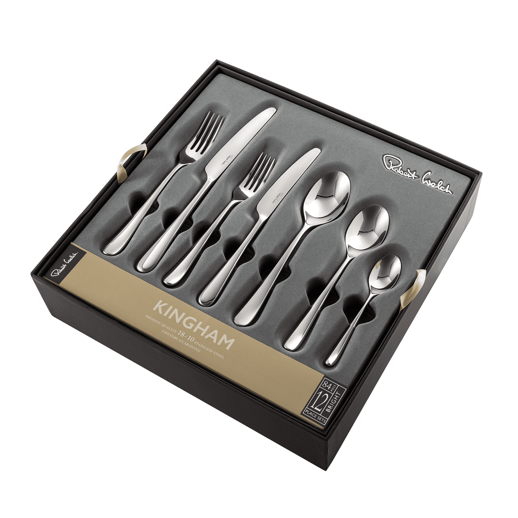 Deze cassette komt uit de serie Kingham Bright van het merk Robert Welch. Het bestek heeft een tijdloos en elegant ontwerp. Hierdoor kan dit bestek bij elke gelegenheid gebruikt worden. Het heeft delicate lijnen en een geleidelijk toelopende greep. Dit maakt het bestek perfect uitgebalanceerd wat prettig in de hand licht. Dit bestek is vervaardigd uit roestvrij 18/10 chroomnikkelstaal. Hierdoor is het geschikt voor dagelijks gebruik en zal heel lang mee gaan. Ook is het bestek vaatwasserbestendig wat het reinigen zeer eenvoudig maakt.