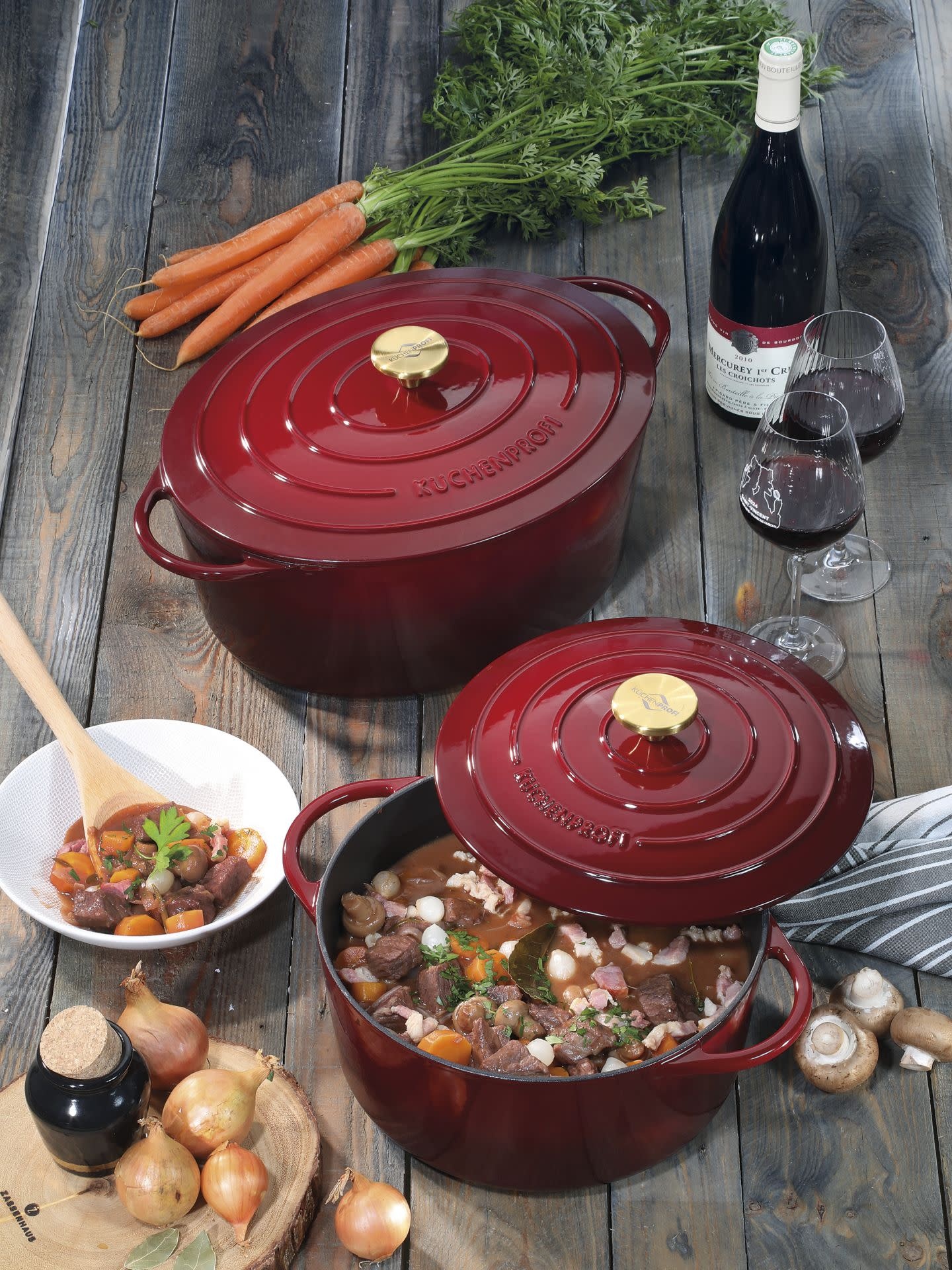 Ervaar de veelzijdigheid van koken met deze stijlvolle braadpan uit de Provence-serie van Küchenprofi. Vervaardigd uit hoogwaardig geëmailleerd gietijzer, zorgt deze pan voor een optimale warmteverdeling en -opslag. Zo kookt u niet alleen gelijkmatig, maar ook energiebesparend, ideaal voor het behouden van smaken en aroma’s.