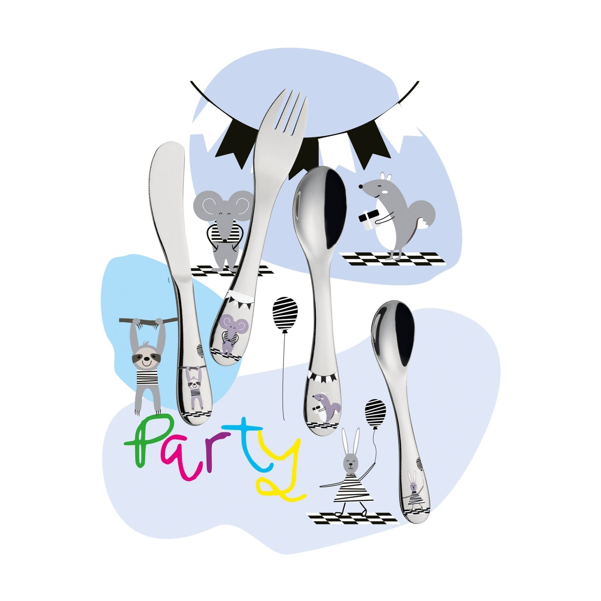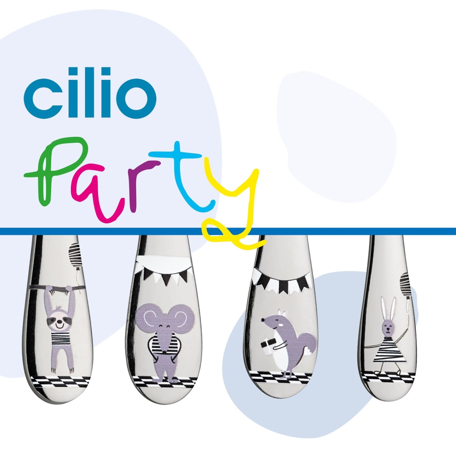 Eten wordt nóg leuker met het 4-delige kinderbestek Party van Cilio. De vrolijke illustraties van dieren op een feestje zorgen voor een glimlach aan tafel en maken van elke maaltijd een klein avontuur.