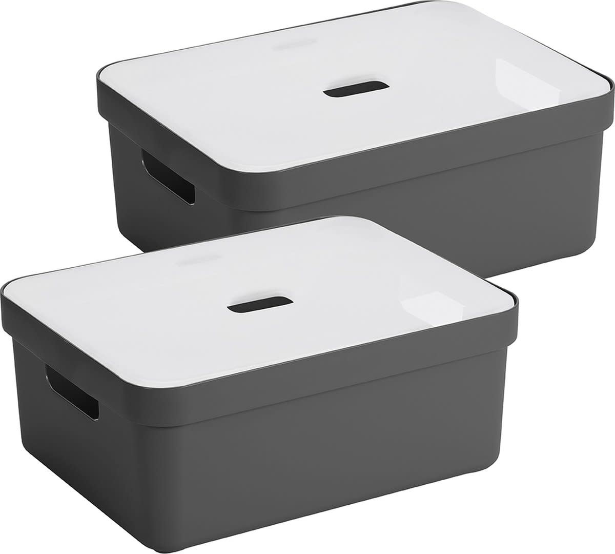 Opbergbox 24L + deksel set 2 antraciet Sigma Home