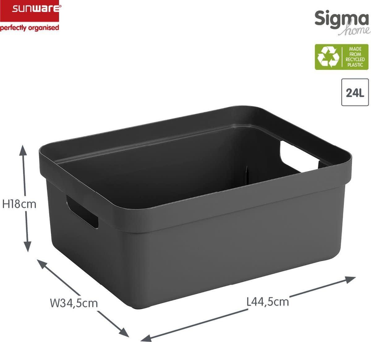 Opbergbox 24L + deksel set 2 antraciet Sigma home
