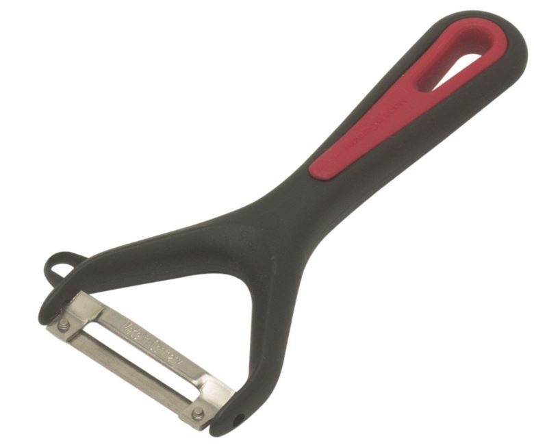 Deze dunschiller heeft een vrij beweegbaar mes en is ideaal voor het schillen van lange groenten als komkommer, wortelen en asperges, maar kan natuurlijk ook voor groentes zoals aardapelen gebruikt worden. De dunschiller heeft een punt voor het verwijderen van aardappelpitjes. De schiller is gemaakt van RVS en heeft een handvat van kunststof met de kleuren zwart en rood. De dunschiller is gemakkelijk op te hangen en heeft een kunststof schepje voor oneffenheden in de groente. Het mesje kan kantelen, daardoor word uw groente ondere de perfecte hoek gesneden.