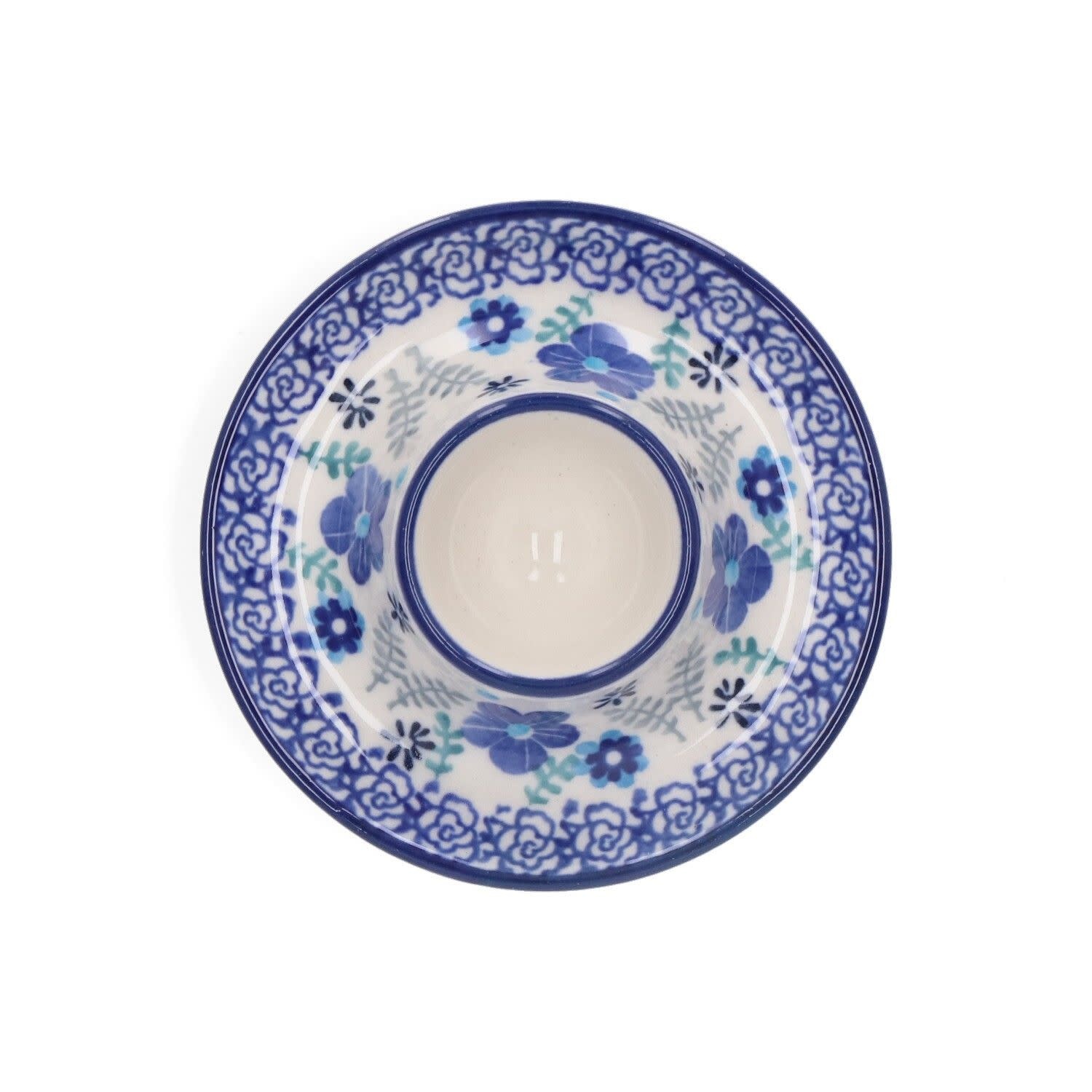 Het lage eierdopje Floral Ballet van Bunzlau Castle is gemaakt van keramiek en maakt deel uit van de Floral Ballet collectie. Het decor toont een romantisch bloemenpatroon in verschillende blauwtinten, met sierlijk verweven grafische elementen. Daarnaast is het met de hand gestempeld en nagekeken, wat elk exemplaar een eigen uitstraling geeft.