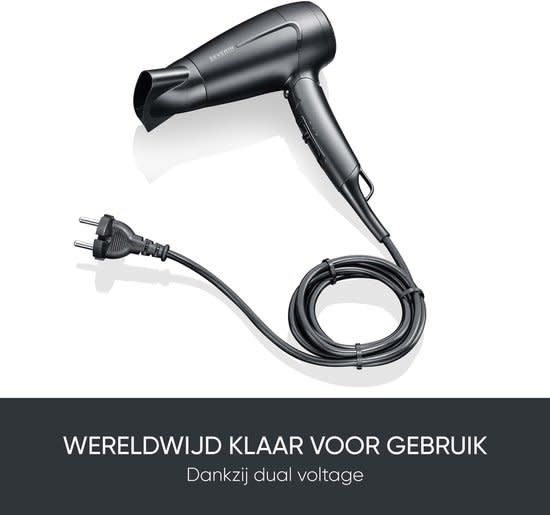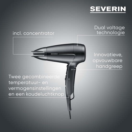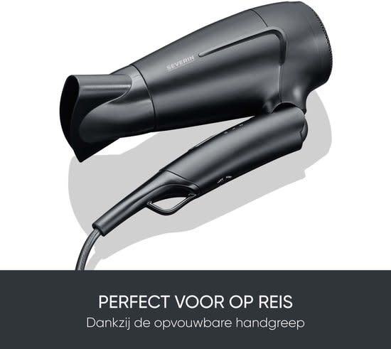 De Severin HT 0159 reisföhn is de ideale haardroger voor wie vaak onderweg is. Dankzij het compacte ontwerp met inklapbare handgreep past hij moeiteloos in een koffer, sporttas of handbagage. De dual-voltage functie (110/220–240 V) maakt hem geschikt voor wereldwijd gebruik, zodat je overal ter wereld verzekerd bent van verzorgd haar.