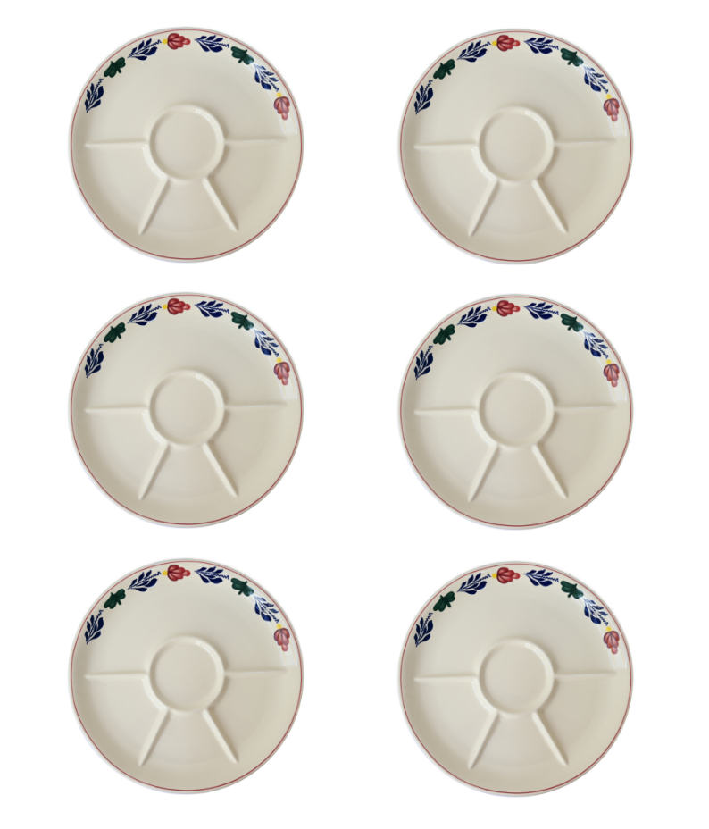 Breng een vleugje nostalgie naar uw eettafel met deze sfeervolle fondueborden uit de geliefde Boerenbont-serie van Royal Boch. Met zijn kenmerkende bloemendecor in blauw, groen, rood en geel, is dit servies al generaties lang een vertrouwd gezicht in vele huishoudens.
