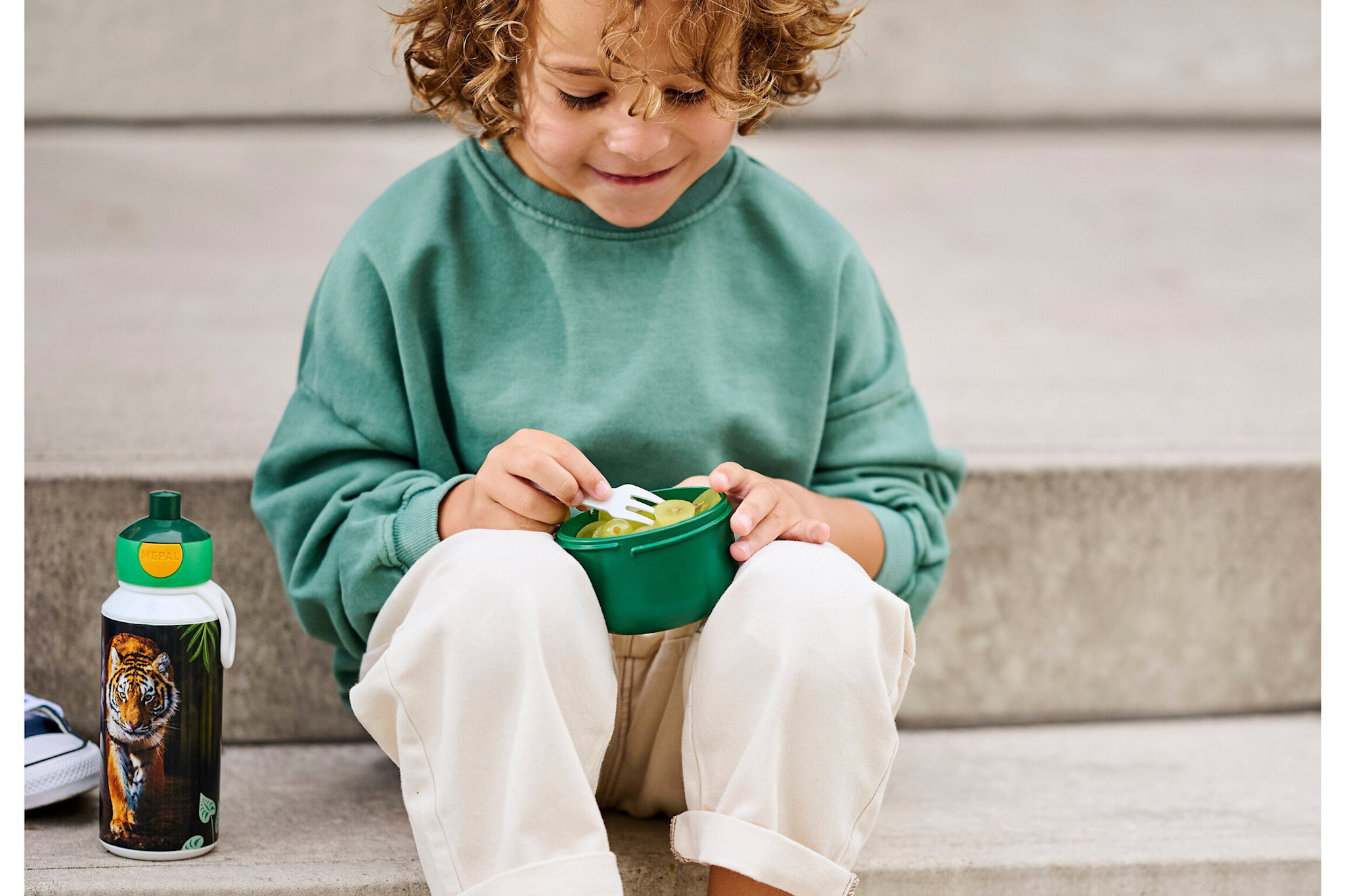 Met een inhoud van 300 ml, een hoogte van 104 mm en een diameter van 67 mm, biedt de fruitdoos voldoende ruimte voor een gezonde snack. Het uitneembare vorkje maakt het gemakkelijk voor kinderen om zonder geknoei te eten. Bovendien is de lunchbox gemaakt van robuust polypropyleen (PP), een materiaal dat BPA-vrij is en volledig recyclebaar.
