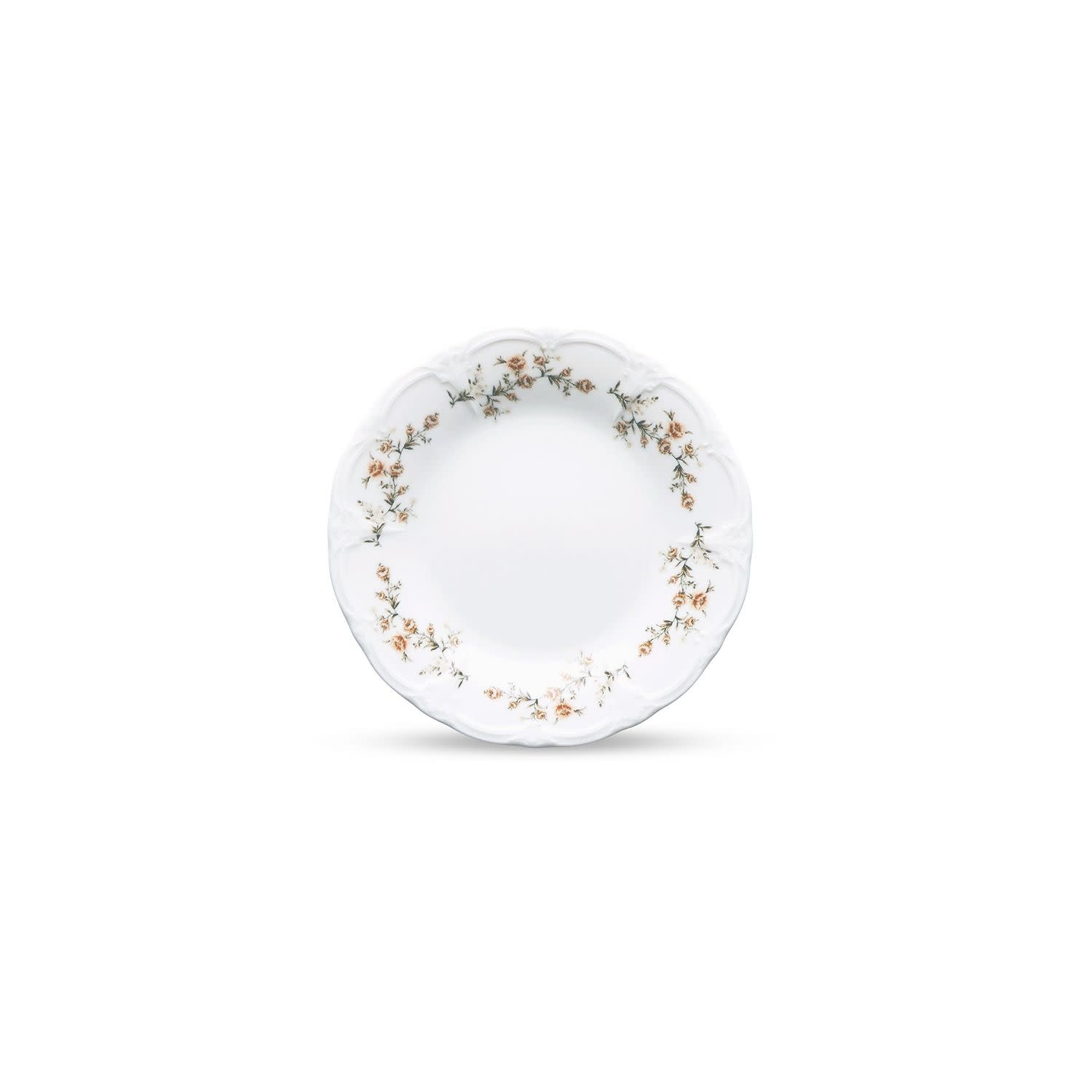 Het gedetailleerde bloemenmotief in warme bruine en crèmekleurige tinten geeft dit bord een speelse knipoog naar het verleden, terwijl de hoge kwaliteit en duurzaamheid zorgen voor betrouwbaarheid bij dagelijks gebruik. Dit compacte gebaksbordje is ideaal voor het serveren van gebak, kleine voorgerechten of desserts, en brengt een vleugje nostalgie naar elke gelegenheid.