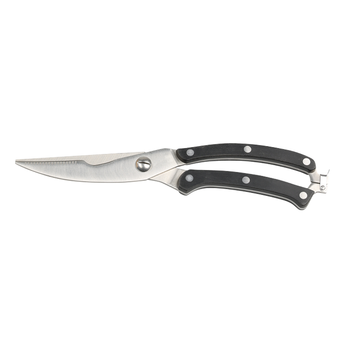 Gevogelteschaar van roestvrij staal met kunststof handvat, 25 cm lang. Voorzien van sterke, scherpe bladen die moeiteloos door vlees en kleine botten knippen. Het ergonomische kunststof handvat zorgt voor een comfortabele en stevige grip. Ideaal voor het knippen en portioneren van gevogelte.