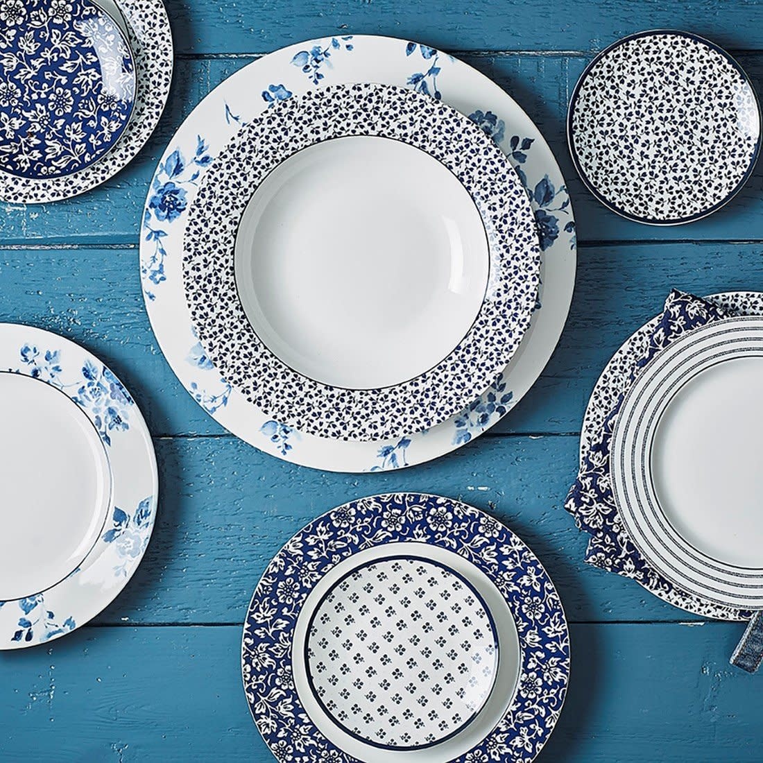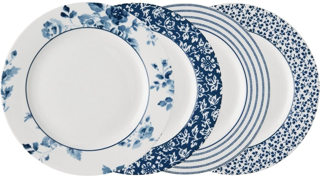 Vrolijk je tafel op met deze set van 4 porseleinen borden uit de Blueprint Collectables van Laura Ashley. Elk bord heeft een uniek, luxe motiefje in harmonieuze blauwtinten, waardoor de borden perfect bij elkaar passen en een stijlvolle, speelse touch geven aan je ontbijt-, lunch- of dinertafel.