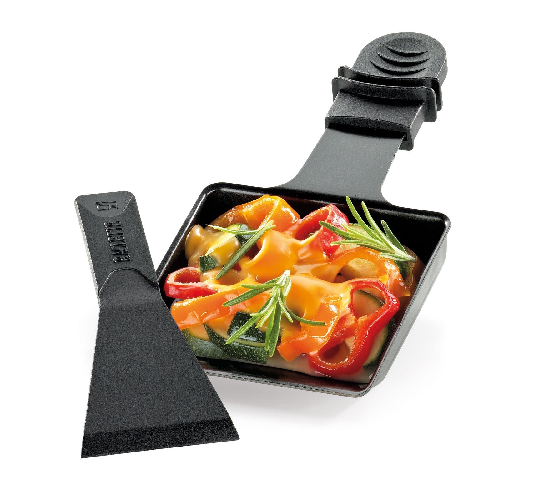 Deze set bestaat uit twee gourmetpannetjes met bijpassende spatels van KüchenProfi en is geschikt voor gebruik op veel raclette- en gourmetgrills. De pannen zijn voorzien van een antiaanbaklaag, waardoor ingrediënten minder snel vastkleven en het schoonmaken eenvoudiger verloopt.