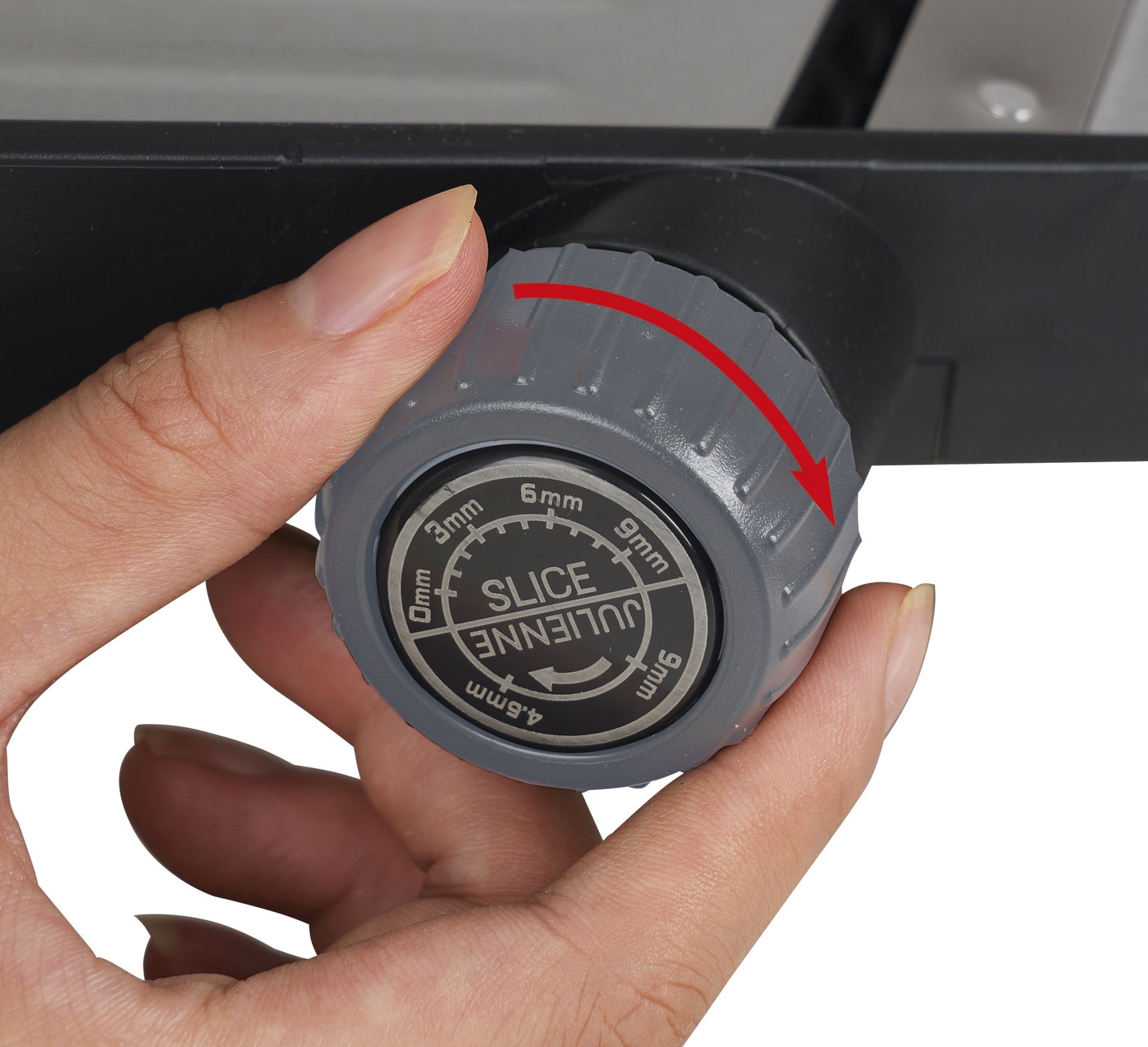 Dankzij de verstelbare snijdikte (van 1 tot 9 mm) en de keuze uit twee snijbreedtes (4,5 mm en 9 mm), past u de snijvorm volledig aan uw wensen aan. Of u nu courgette, wortel, paprika of koolrabi snijdt, het resultaat is telkens strak en gelijkmatig.