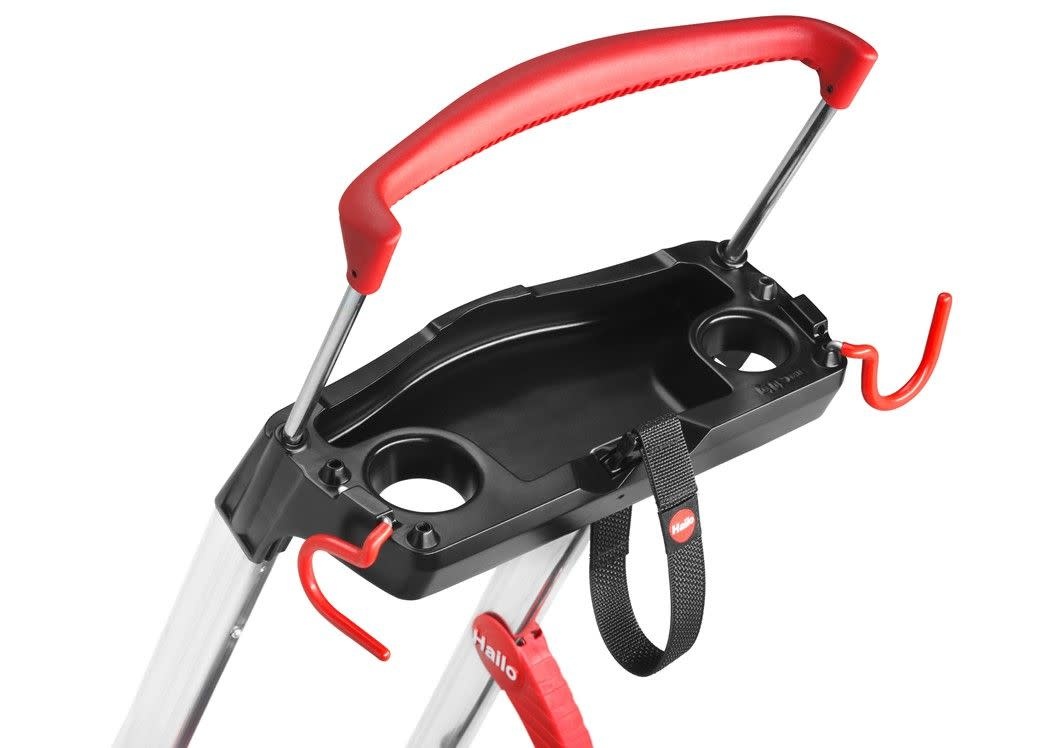 De Hailo L95 huishoudtrap maakt het uitvoeren van reparatie- of schoonmaakwerk in huis, in de tuin of op de werkplaats eenvoudiger en veiliger. De trap is uitgerust met extra brede treden (13 cm) met anti-slip patroon en een verzinkt stalen platform, waardoor je extra stabiel en comfortabel kunt staan.