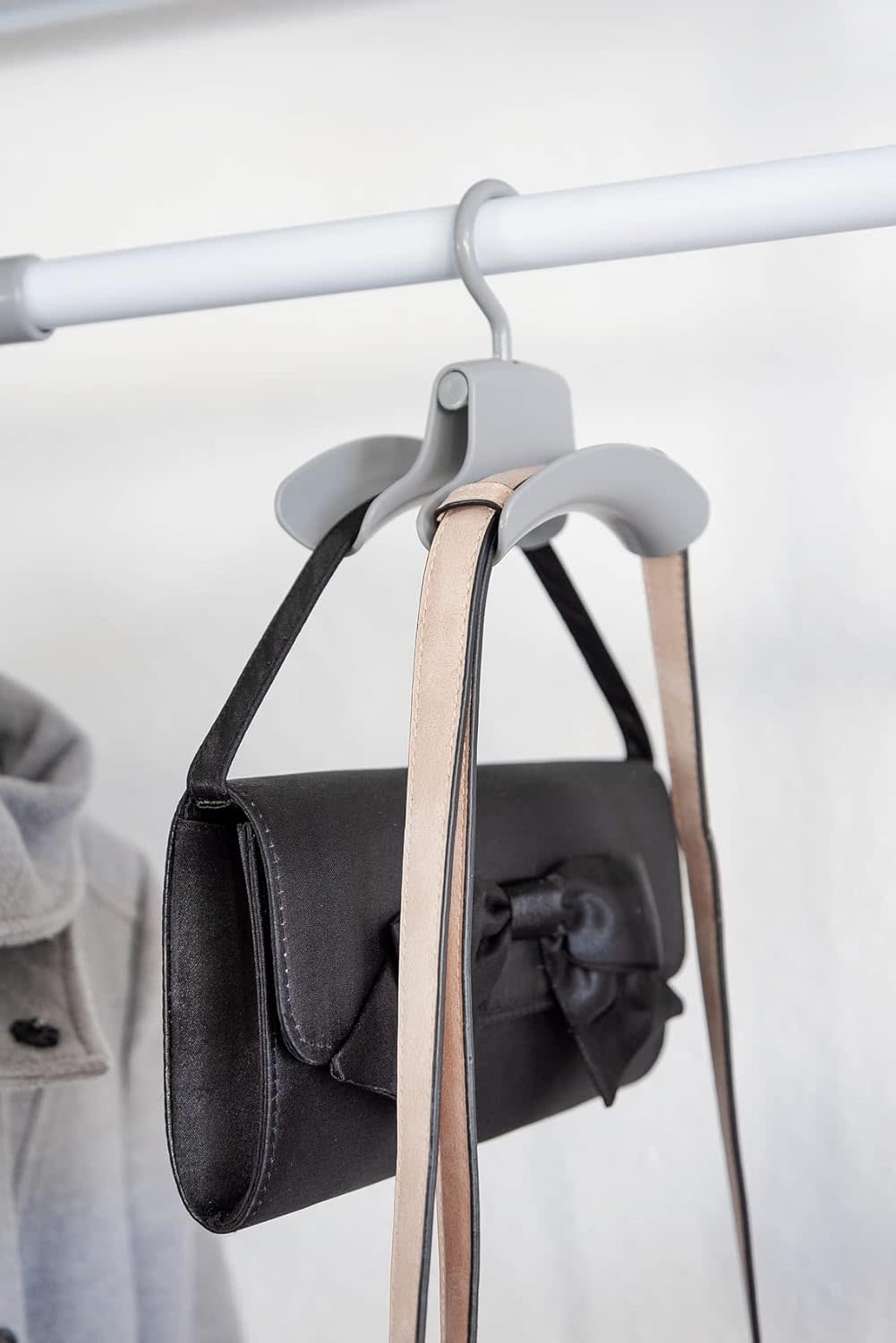Houd je handtassen, rugzakken of accessoires netjes en overzichtelijk met deze set van 3 handtashouders voor het Hercules-garderobesysteem van WENKO. De dubbele ophanghaken passen perfect op de Hercules-kledingstangen en bieden extra opbergruimte in je walk-in closet, hal of slaapkamer. Ideaal voor handtassen, sjaals, stropdassen of andere accessoires, zodat alles compact en binnen handbereik blijft.