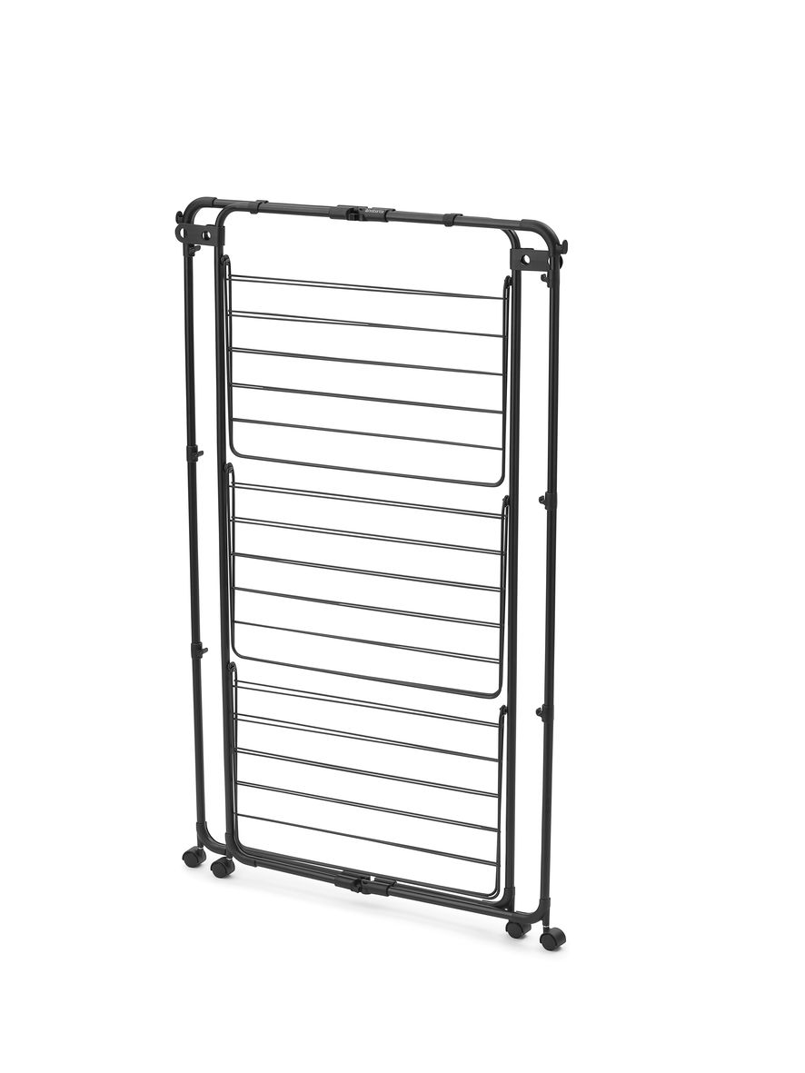 Dankzij de vier wielen verplaats je het droogrek makkelijk, zelfs als er al was op hangt. Na gebruik klap je het geheel eenvoudig in tot een compact pakket, zodat je het makkelijk kunt opbergen. Het stevige stalen frame en de stabiele constructie zorgen ervoor dat het rek geschikt is voor dagelijks gebruik binnenshuis.