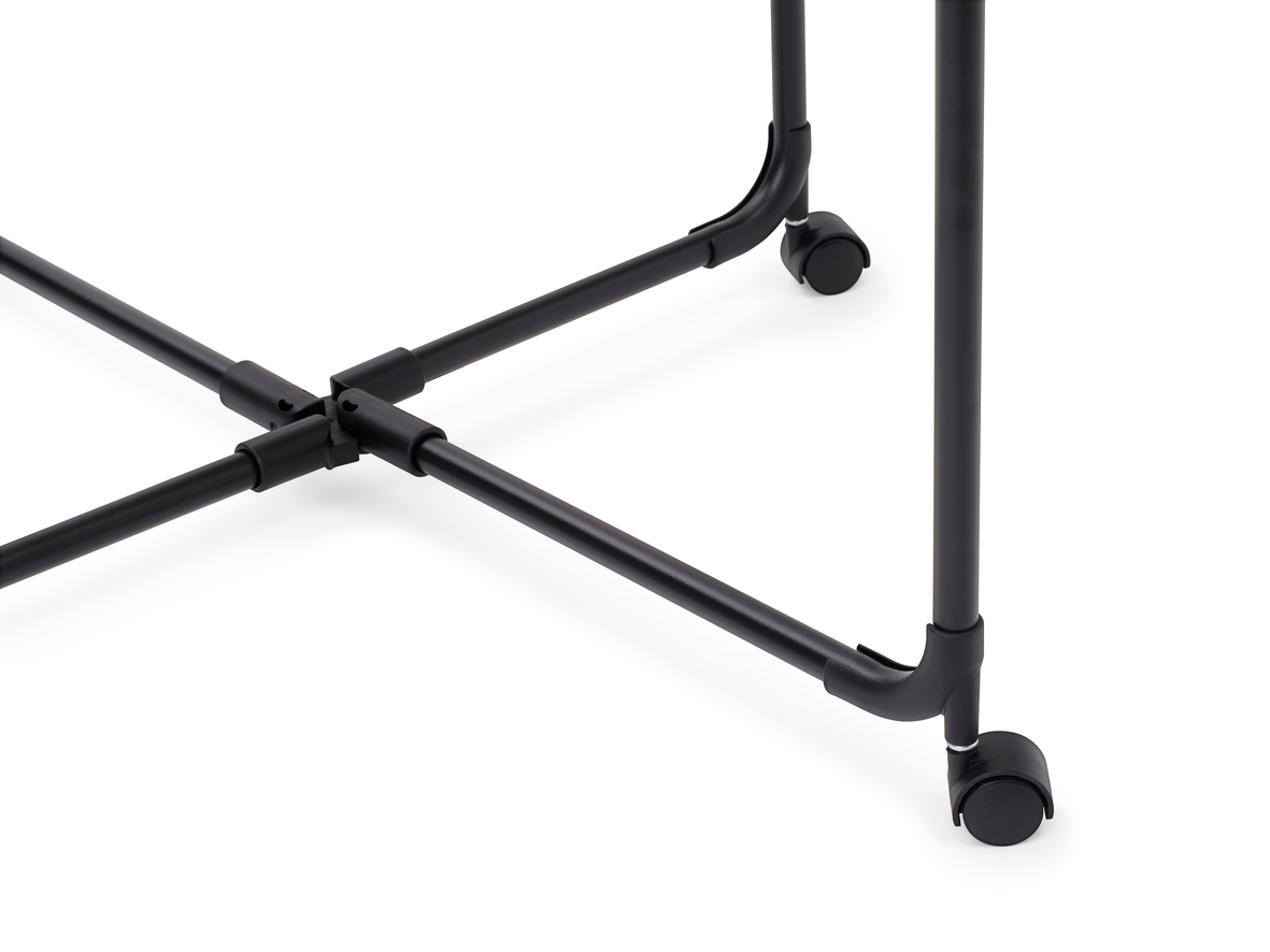Dankzij de vier wielen is het rek eenvoudig te verplaatsen, zelfs wanneer het al vol hangt. Na gebruik klap je het compact in, zodat het makkelijk op te bergen is. Het stevige frame van staal zorgt voor stabiliteit en maakt het geschikt voor dagelijks gebruik in huis.