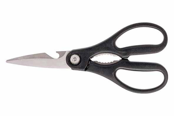 Deze keukenschaar van 21,5 cm is een onmisbare hulp in elke keuken. De scherpe bladen van roestvrij staal zorgen voor een precieze snede, terwijl het ergonomische handvat in zwart kunststof comfortabel in de hand ligt. Ideaal voor het knippen van verpakkingen, kruiden, vlees of huishoudelijke taken.