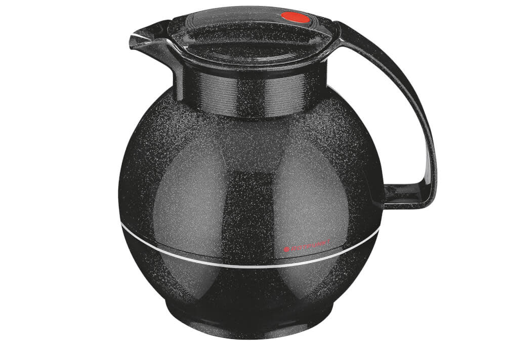 De Isoleerkan 1,0L Sparkling Black Rotpunkt is een stijlvolle en praktische oplossing voor het bewaren van dranken op de gewenste temperatuur. Deze isoleerkan is vervaardigd uit hoogwaardig kunststof (PP) en een glazen fles van dubbelwandig Rosalin glas, wat zorgt voor uitstekende isolatie en duurzaamheid. De dubbele schroefdop maakt het mogelijk om te schenken zonder de dop te verwijderen, waardoor warmte- of koudeverlies wordt voorkomen.