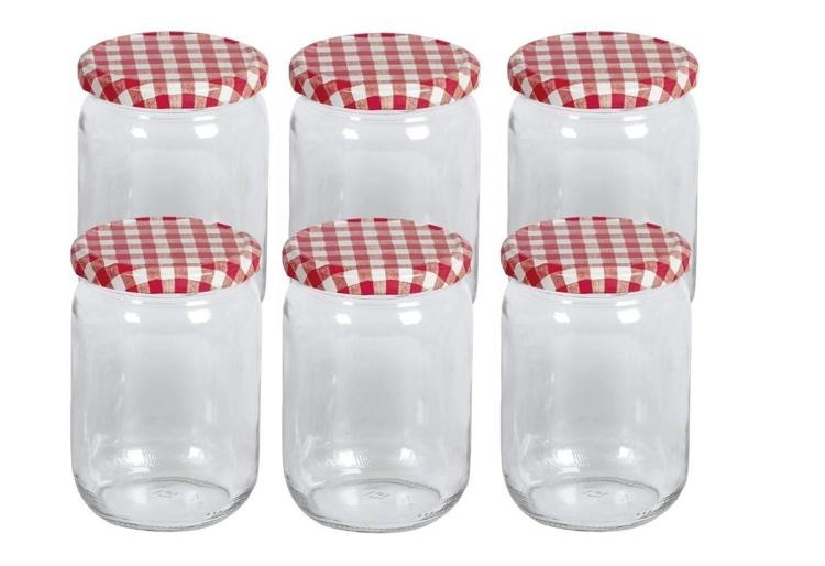 Jampotglazen per 6 stuks 540 ml deksels rood geruit