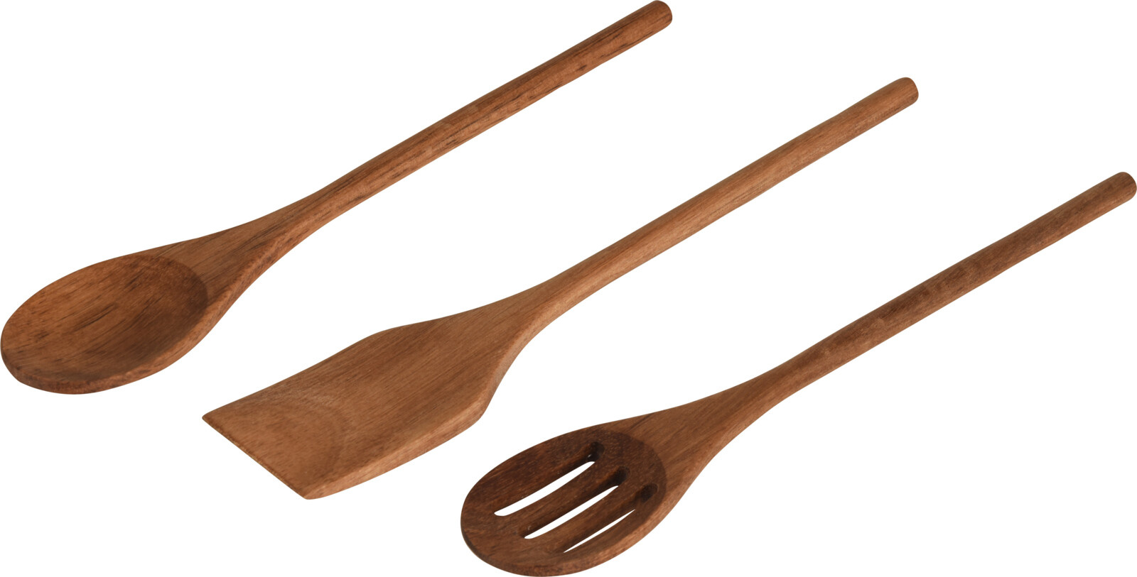 Met deze 3-delige set keukenhulpen beschikt u over essentiële tools voor het bereiden van uw gerechten. De set bevat twee lepels en een sleeplepel, allemaal vervaardigd uit duurzaam acaciahout, dat niet alleen stevig is, maar ook een natuurlijke en warme uitstraling aan uw keuken geeft.