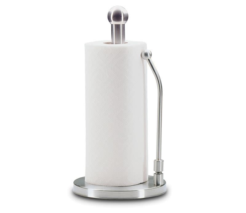 Deze stevige, roestvrijstalen houder is voorzien van een gefedereerde stopper die de keukenrol veilig op zijn plaats houdt. Hierdoor scheurt u de rollen moeiteloos af. Een standaard keukenrol (tot Ø 12,5 cm) heeft een vaste plek en is altijd binnen handbereik. Voor reiniging veegt u de houder eenvoudig af met een vochtige doek.